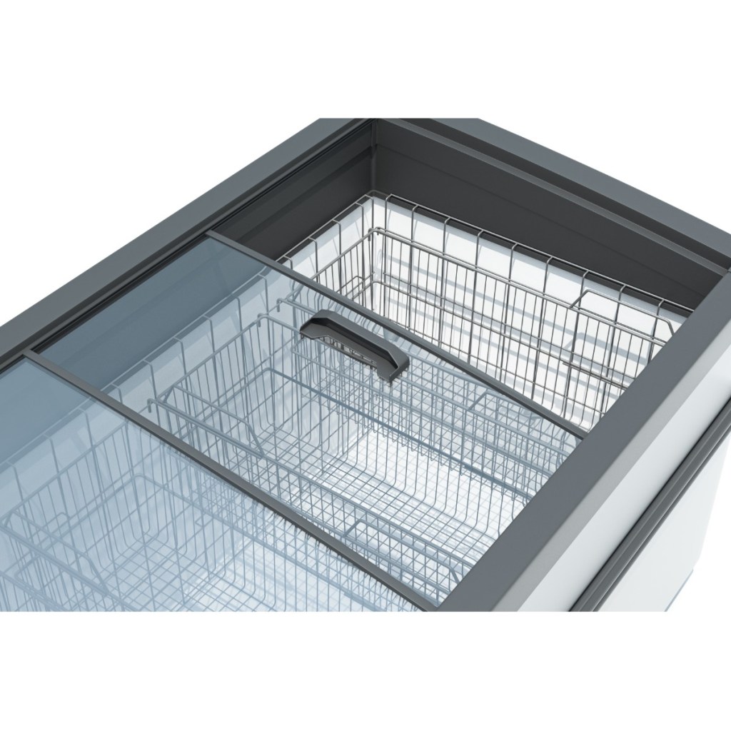 Ларь-бонета морозильная Frostor F 2100 ВЕ серая с корзинами — энергоэффективное торговое оборудование класса A, предназначенное для хранения и демонстрации замороженной продукции. Модель подходит для магазинов любого формата и может быть адаптирована под дизайн торгового зала.