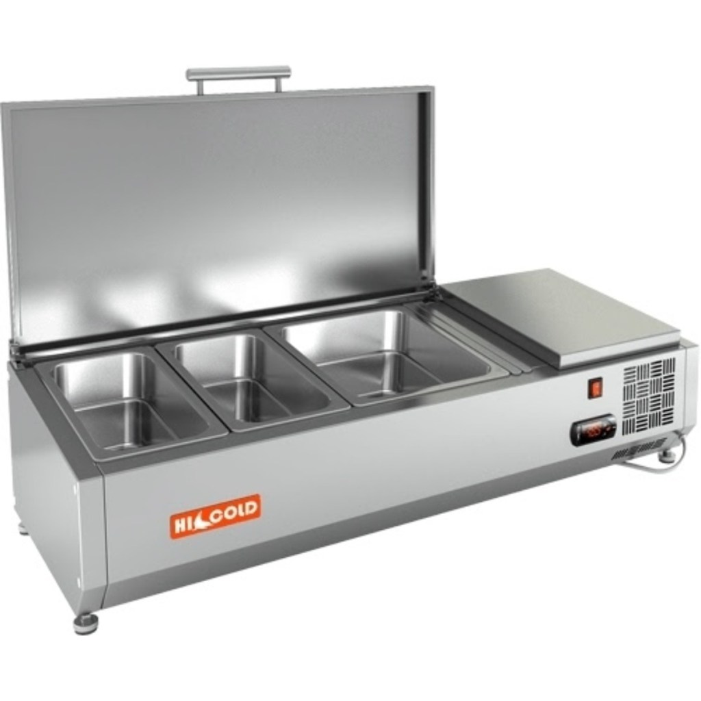 Каталог оборудования Холодильное оборудованиеВитрины для ингредиентовВитрина холодильная для ингредиентов HICOLD VRTU 1000 к PZE3 (1/3) Витрина холодильная для ингредиентов HICOLD VRTU 1000 к PZE3 (1/3) Код товара: 064-664 Поделиться: WhatsAppTelegram СравнитьДобавить в КПВ избранное 0 47 673 ₽ В корзину 0 шт Под заказСамовывоз сегодня бесплатно Взять в кредит Купить в лизинг Получить консультацию в WhatsApp Описание Характеристики Отзывы 0 Инструкции 3 Витрина холодильная для ингредиентов HICOLD VRTU 1000 к PZE3 (1/3) предназначена для охлаждения, кратковременного хранения и демонстрации ингредиентов, салатов и готовых блюд на предприятиях общественного питания и торговли. Устанавливается на холодильные столы для пиццы серии PZE3 благодаря встроенным креплениям в нижней части корпуса. На фото показана аналогичная модель с настольной установкой. Ключевые особенности: Корпус из нержавеющей стали — долговечность и лёгкость ухода. Электронная панель управления — точная настройка температуры. Исполнение U — оснащена крышкой для защиты продуктов. Высота витрины — 279 мм — компактное размещение на рабочей поверхности. Вместимость: 2 x GN1/3 + 1 x GN1/2 — рациональная организация хранения (гастроёмкости приобретаются отдельно). Совместимые модели столов: PZE3-11/GN, PZE3-11/SN HICOLD VRTU 1000 к PZE3 (1/3) — это профессиональная настольная витрина, которая сочетает компактные размеры, современное управление и надежную защиту ингредиентов. Отличный выбор для пиццерий, ресторанов и кафе, где важны удобство доступа, сохранность продуктов и высокая скорость работы.Изображение товара, представленного на фото, может отличаться от его фактического вида. Показать все Габаритные размеры1000×385×279 ммДиапазон рабочей температурыот +2 до +7 °CДлина1000 ммГлубина385 ммВысота279 ммТип крышкиМеталлическая Гастроемкостей3 штТип гастроемкостейGN 1/2, GN 1/3 Напряжение220 ВТип охлажденияСтатическое Материал изготовленияНержавеющая сталь ХладагентR134 Мощность0,15 кВтВес нетто 27 кгВес брутто60 кгТип оттайкиРучная Габариты в упаковке1180×550×590 ммБрендHicold Оставить отзыв Еще никто не оставил отзыв на этот товар Инструкция на HICOLD VRTU 2360 к PZ4.pdfСхема установки на витрину.jpgДекларация о соответствии.pdf Похожие товары Перейти в каталог Под заказ 50 575 ₽ Витрина для ингредиентов Polair VT2-G (1/3) с крышкой В наличии 72 104 ₽ Витрина холодильная для ингредиентов TEFCOLD VK33-120 С этим товаром покупают В наличии 102 148 ₽ Стол морозильный Cooleq SNACK2100BT/600 В наличии 92 440 ₽ Льдогенератор HURAKAN HKN-IMG40 (гурме) Ранее просмотрено Под заказ 54 694 ₽ Витрина холодильная для ингредиентов HICOLD VRTU 1485 к PZE3 (1/3) Под заказ 84 609 ₽ Витрина холодильная для ингредиентов HICOLD VRTG 2280 к PZ3 (1/3) Под заказ 89 578 ₽ Витрина холодильная для ингредиентов HICOLD VRTG 2360 к PZ3 (1/3) В наличии 57 825 ₽ Витрина холодильная для ингредиентов HICOLD VRTU 1835 к PZ3 (1/3) Под заказ 72 729 ₽ Витрина холодильная для ингредиентов HICOLD VRTG 1970 к PZЕ3 (1/3) Под заказ 117 764 ₽ Витрина холодильная Ангара 2 КУБ УН-90 динамика