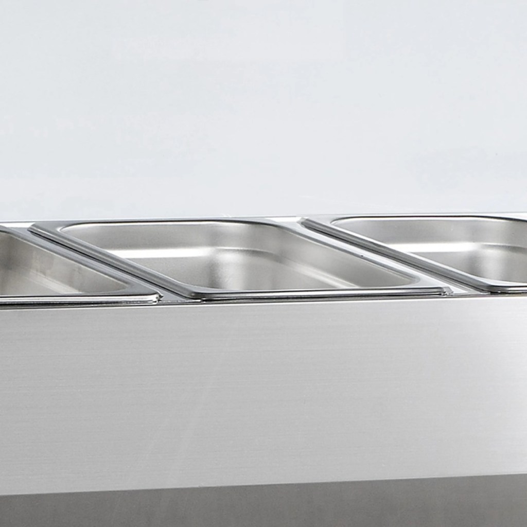 Каталог оборудования Холодильное оборудованиеВитрины для ингредиентовВитрина холодильная для ингредиентов TEFCOLD VK38-120 Витрина холодильная для ингредиентов TEFCOLD VK38-120 Код товара: 010-384 Поделиться: WhatsAppTelegram СравнитьДобавить в КПВ избранное 0 82 699 ₽ В корзину 0 шт В наличииСамовывоз сегодня бесплатно Взять в кредит Купить в лизинг Получить консультацию в Max Описание Характеристики Отзывы 0 Витрина холодильная для ингредиентов TEFCOLD VK38-120 предназначена для кратковременного хранения и демонстрации готовых салатов, мясных и рыбных закусок, а также ингредиентов на предприятиях общественного питания и торговли. Корпус и внутренняя обшивка выполнены из нержавеющей стали, что обеспечивает долговечность и легкость очистки. Гастроемкости в комплект не входят. Особенности: Статическое охлаждение — равномерное поддержание температуры для деликатных продуктов. Механическое размораживание — надежное удаление наледи без вмешательства пользователя. Хладагент R600a — экологичный и энергоэффективный. Электронный термостат и градусник — точная настройка и контроль температуры. Гнутый стеклянный колпак — обеспечивает обзор продукции и защиту от внешних воздействий. Регулируемые ножки — удобная установка и устойчивость на неровной поверхности. Климатический класс 4 — работа при температуре окружающей среды до +32°C. Вместимость — 4×GN 1/3 глубиной 150 мм, удобно для салатов и закусок. Перегородки — 3 длинных и 4 коротких для удобного разделения продуктов. Уровень шума — 47 дБ, почти бесшумная работа. Хладагент — 0,04 кг, эффективное охлаждение при минимальном расходе. Внутренние размеры — 845×305×155 мм, компактное размещение емкостей. TEFCOLD VK38-120 — компактная и надежная витрина для демонстрации и кратковременного хранения продуктов с безопасным поддержанием температурыИзображение товара, представленного на фото, может отличаться от его фактического вида. Показать все Габаритные размеры1200×395×435 ммДиапазон рабочей температурыот +2 до +10 °CДлина1200 ммГлубина395 ммВысота435 ммТип крышкиСтеклянная Гастроемкостей4 штТип гастроемкостейGN 1/3 Мощность0,112 ВтНапряжение220 ВТип охлажденияСтатическое Уровень шума47 дБКлиматический класс4 ХладагентR600a Вес нетто40 кгВес брутто45 кгТип оттайкиРучная Габариты в упаковке1280×440×310 ммБрендTefcold Оставить отзыв Еще никто не оставил отзыв на этот товар Похожие товары Перейти в каталог Под заказ Цена по запросу Витрина для ингредиентов Polair VT2-G (1/3) открытого типа Под заказ 60 350 ₽ Витрина для ингредиентов Polair VT2v-G (1/3) с подсветкой и защитным колпаком С этим товаром покупают В наличии 99 023 ₽ Стол холодильный среднетемпературный Polair ТМ2GN-G В наличии 161 242 ₽ Льдогенератор ICEMAKE ND 50 AS Под заказ 142 619 ₽ Шкаф холодильный МХМ Капри 1,5М нержавейка Ранее просмотрено Под заказ 88 536 ₽ Витрина морозильная Таир ВХН-1,5 Cube Под заказ 96 407 ₽ Витрина морозильная Таир ВХН-1,8 Cube Под заказ 336 876 ₽ Стол холодильный для пиццы TEFCOLD PT1365 + VK33-140
