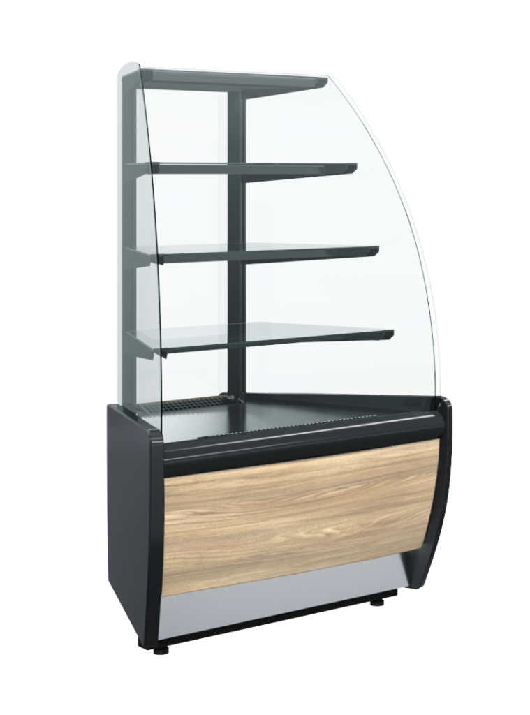 Витрина кондитерская Carboma K70 N-3 Light Паттерн (0106 Седой дуб) угловая предназначена для кратковременного хранения и эффектной демонстрации кондитерских изделий, напитков и готовых блюд. Благодаря динамической системе охлаждения обеспечивается стабильное и равномерное распределение температуры по всей внутренней камере, что важно для сохранения свежести продукции.