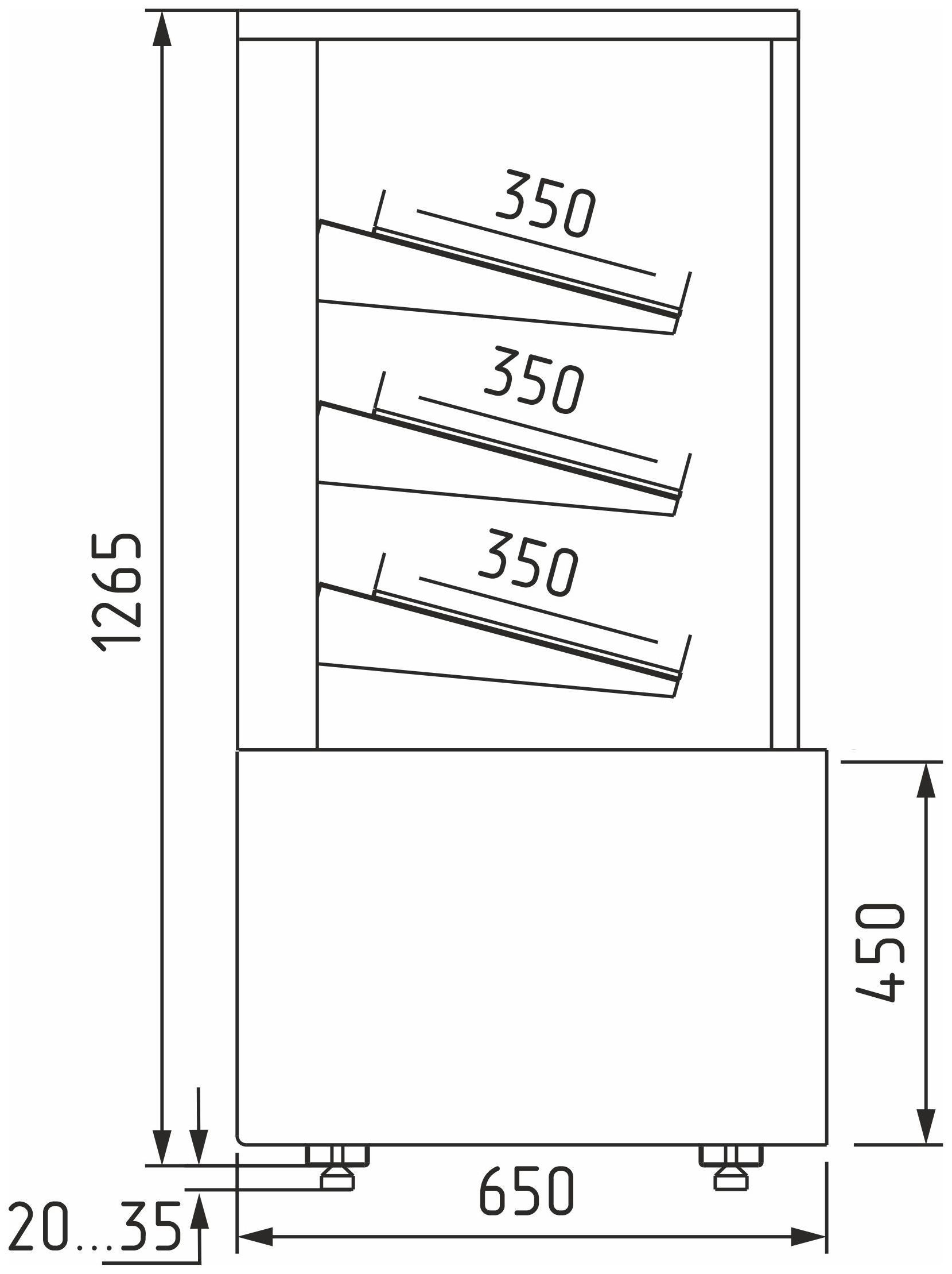 Корпус витрины изготовлен из окрашенной стали, с термоизоляцией из пенополиуретана. Конструкция дополнена боковым остеклением и раздвижными задними створками из оргстекла.