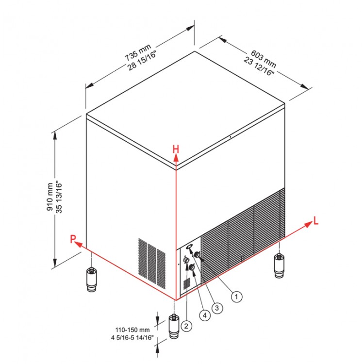 Модель производит до 80 кг льда в сутки, а встроенный бункер вмещает 40 кг готового льда. Технология распыления воды обеспечивает образование идеально прозрачных и плотных кубиков, которые медленно тают, сохраняя вкус и внешний вид напитков. Система водяного охлаждения гарантирует стабильную работу даже при интенсивной эксплуатации, а использование экологичного хладагента R290 снижает энергопотребление и делает устройство безопасным для окружающей среды.