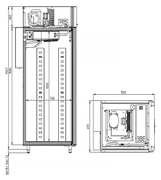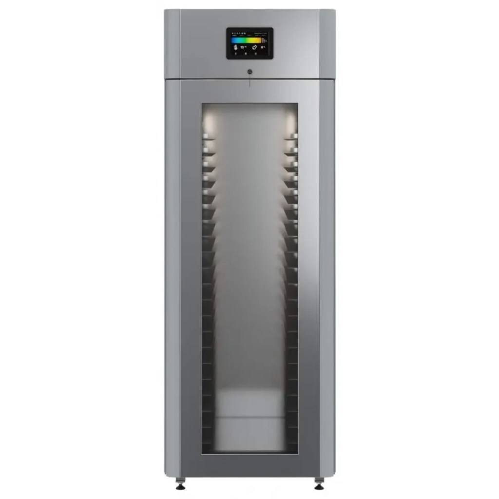 Каталог оборудования Холодильное оборудованиеШкафы холодильныеСпециализированные холодильные шкафыШкаф холодильный для хлебопекарных производств Polair CS107-Bakery Br со стеклом (Тип 2) Шкаф холодильный для хлебопекарных производств Polair CS107-Bakery Br со стеклом (Тип 2) Код товара: 062-623 Поделиться: WhatsAppTelegram СравнитьДобавить в КПВ избранное 0 419 900 ₽ В корзину 0 шт Под заказСамовывоз сегодня бесплатно Взять в кредит Купить в лизинг Получить консультацию в WhatsApp Описание Характеристики Отзывы 0 Инструкции 5 Шкаф холодильный для хлебопекарных производств Polair CS107-Bakery Br со стеклом (Тип 2) предназначен для создания оптимальных условий хранения и расстойки заготовок из теста на предприятиях общественного питания и торговли. Корпус цельнозаливной, выполнен из нержавеющей стали, дверь — стеклопакет. Оборудование стабильно работает при температуре окружающей среды до +40 °C. В комплект входят 20 пар направляющих размером 400×600 мм. Особенности: Многофункциональные режимы: охлаждение тестовых заготовок, замедление ферментации, хранение, регенерация, брожение и расстойка Динамическое охлаждение с мягким обдувом без заветривания и автоматическая оттайка с системой испарения конденсата Панель управления с 7" дисплеем: контроль температуры, влажности (регулируется от 60 до 95 %), скорости вентилятора и времени, возможность создания и сохранения собственных программ Встроенный ультразвуковой увлажнитель (требуется подключение к системе водоочистки и канализации) Эргономичная конструкция: верхнее расположение агрегата, распашная дверь со стеклопакетом и механизмом самозакрывания, педаль для удобного открытия, съёмные направляющие и легко заменяемый уплотнитель с магнитной вставкой Простота ухода: штампованное углубление в дне корпуса для сбора загрязнений Экологичный хладагент R290 Энергоэффективность: потребляемая мощность — 0,55 кВт (охлаждение), 0,9 кВт (нагрев) Толщина стенки корпуса — 43 мм Polair CS107-Bakery Br со стеклом (Тип 2) — современный шкаф отложенной расстойки, обеспечивающий полный контроль и гибкость при работе с тестовыми заготовками. Благодаря многофункциональным режимам, точной настройке параметров и продуманной конструкции, он становится надёжным решением для пекарен и кондитерских, стремящихся к высокому качеству продукции и удобству в эксплуатации.Изображение товара, представленного на фото, может отличаться от его фактического вида. Показать все Габаритные размеры697×1005×1960 ммДиапазон рабочей температурыот -10 до +40 °CДлина697 ммШирина1005 ммВысота1960 ммОбъём700 лКол-во дверей1 Тип двериСтеклянная Уровень влажностиот 60 до 95 %Направляющие под EN 40*6020 Расстояние между направляющими60 ммХолодильный агрегатВстроенный Тип оттайкиАвтоматическая Тип охлажденияДинамический ПодсветкаЕсть ХладагентR290 Вес нетто180 кгВес брутто205 кгБрендPolairВсе специализированные холодильные шкафы Из нержавейки Оставить отзыв Еще никто не оставил отзыв на этот товар Схема POLAIR CS107 Bakery Br.jpgИнструкция на POLAIR CS107 Bakery Br.pdfБрошюра на хлебопекарное оборудование POLAIR.pdfДекларация о соответствии.pdfСертификат соответствия.pdf Похожие товары Перейти в каталог Под заказ 390 915 ₽ Шкаф холодильный для вызревания салями Polair CS107 Salami Под заказ 169 915 ₽ Шкаф холодильный для хлебопекарных производств Polair CS107 Bakery Bs В наличии 405 365 ₽ Шкаф холодильный для хлебопекарных производств Polair CS107 Bake