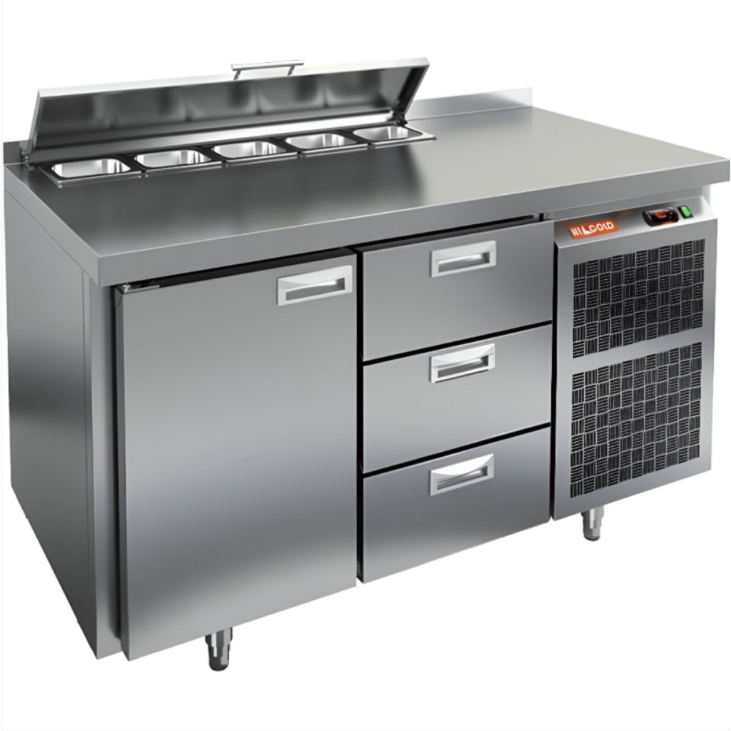 Каталог оборудования Холодильное оборудованиеСтолы охлаждаемыеСтолы холодильные для салатовСтол холодильный для салатов HiCold SL1-13GN (1/3) с крышкой Стол холодильный для салатов HiCold SL1-13GN (1/3) с крышкой Код товара: 064-852 Поделиться: WhatsAppTelegram СравнитьДобавить в КПВ избранное 0 189 622 ₽ В корзину 0 шт Под заказСамовывоз сегодня бесплатно Взять в кредит Купить в лизинг Получить консультацию в WhatsApp Описание Характеристики Отзывы 0 Стол холодильный для салатов HiCold SL1-13GN (1/3) с крышкой предназначен для профессиональных кухонь в общепите и торговле. Он совмещает рабочую поверхность и охлаждаемый объем, что ускоряет процесс приготовления и хранение ингредиентов. Корпус и столешница выполнены из нержавеющей стали — прочной, устойчивой к коррозии и простой в уходе. Металлическая крышка защищает продукты от загрязнений и сохраняет их свежесть. Особенности модели: Электронная панель управления — точная регулировка и стабильный температурный режим. Салат-бар на 5 гастроемкостей глубиной до 100 мм — быстрый доступ к ингредиентам. 1 глухая дверь — для хранения продуктов и тары. 2 выдвижных ящика — удобное размещение мелких или часто используемых ингредиентов. Автоматические доводчики дверей с фиксацией — комфорт при загрузке/выгрузке. Магнитные уплотнители — легко заменяются, обеспечивают герметичность и энергосбережение. Открытая агрегатная часть — простое обслуживание и доступ к компрессору. Регулируемые по высоте ножки — установка даже на неровном полу. Столешница толщиной 50 мм с бортом 50 мм — прочная рабочая поверхность и защита от загрязнений. Эффективная теплоизоляция 50 мм — сохранение холода и снижение энергозатрат. HiCold SL1-13GN (1/3) с крышкой — надежный салатный стол для удобной организации рабочего места и сохранения свежести продуктов на профессиональной кухне.Изображение товара, представленного на фото, может отличаться от его фактического вида. Показать все Габаритные размеры1390×700×850 ммДиапазон рабочей температурыот +2 до +10 °CРасположение агрегатаБоковое Материал столешницыНержавеющая Тип столаС дверьми и ящиками Тип двериГлухая Объём350 лКоличество дверей1 штТип гастроемкостейGN 1/3 Количество ящиков3 штРазмер полки530×325 ммНапряжение220 ВМощность0,22 кВтТип охлажденияДинамическое Тип оттайкиАвтоматическая СтолешницаС бортом Габариты в упаковке1550×850×1000 ммВес нетто105 кгВес брутто148 кгБрендHicold Оставить отзыв Еще никто не оставил отзыв на этот товар Ранее просмотрено Под заказ 204 472 ₽ Стол холодильный для салатов HiCold SL1-22SN (1/3) с крышкой Под заказ 166 221 ₽ Стол холодильный для салатов HiCold SL1-11GN (1/3) М с крышкой Под заказ 259 642 ₽ Стол холодильный для салатов HiCold SL1-222SN (1/3) с крышкой Под заказ 152 002 ₽ Стол холодильный для салатов HiCold SLE2-111SN (1/6) О З с крышкой Под заказ 163 162 ₽ Стол холодильный для салатов HiCold SL1-111SN (1/3) О без крышки