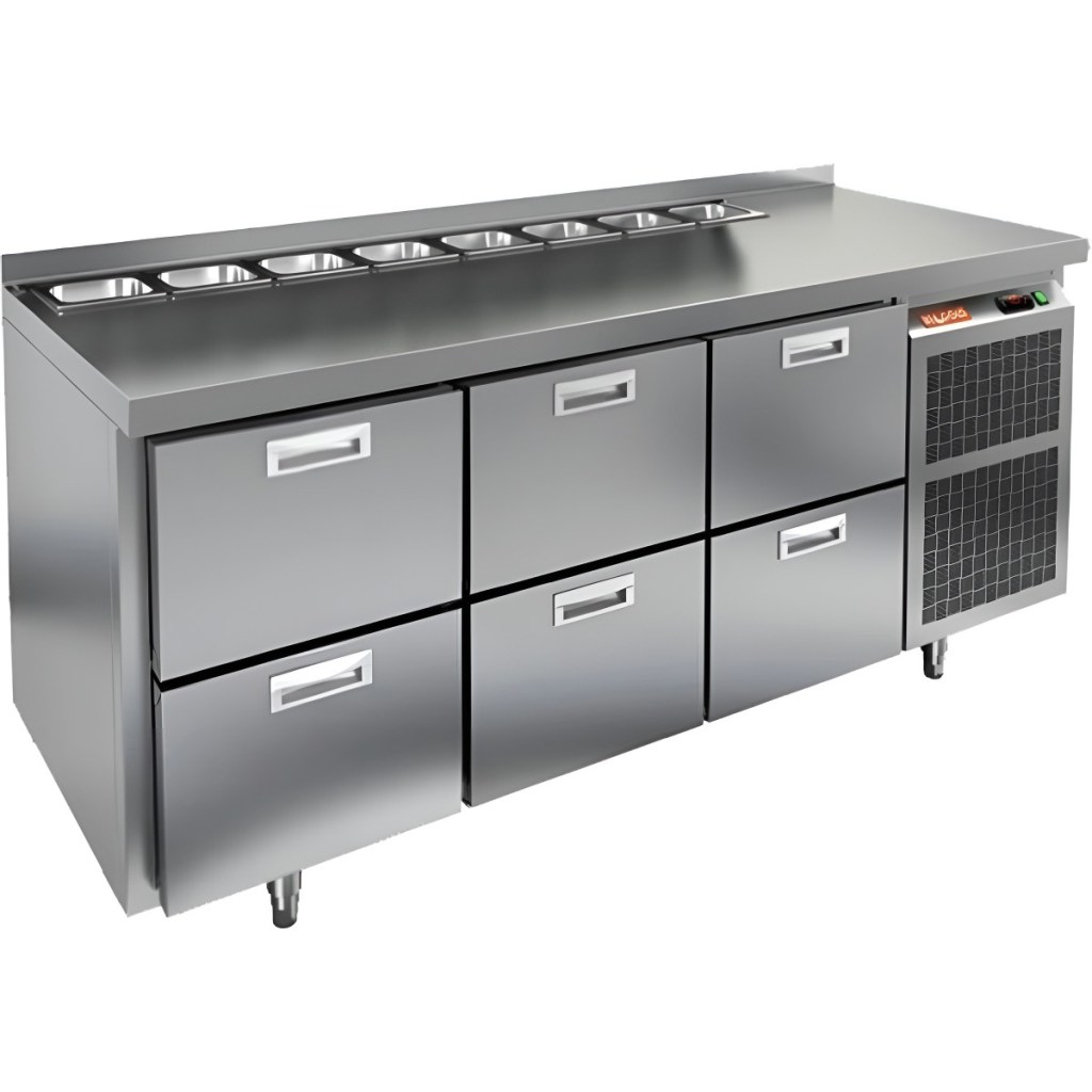 Каталог оборудования Холодильное оборудованиеСтолы охлаждаемыеСтолы холодильные для салатовСтол холодильный для салатов HiCold SL1-222GN (1/3) без крышки Стол холодильный для салатов HiCold SL1-222GN (1/3) без крышки Код товара: 064-845 Поделиться: WhatsAppTelegram СравнитьДобавить в КПВ избранное 0 255 412 ₽ В корзину 0 шт Под заказСамовывоз сегодня бесплатно Взять в кредит Купить в лизинг Получить консультацию в WhatsApp Описание Характеристики Отзывы 0 Инструкции 1 Стол холодильный для салатов HiCold SL1-222GN (1/3) без крышки предназначен для использования на предприятиях общественного питания и торговли. Он объединяет рабочую поверхность и охлаждаемый отсек, что делает его удобным решением для хранения, охлаждения и подготовки ингредиентов при приготовлении салатов, пиццы и других блюд. Такая конструкция позволяет повару работать быстрее и эффективнее, так как все необходимые продукты находятся под рукой. Корпус и столешница выполнены из прочной нержавеющей стали, устойчивой к коррозии и легко поддающейся санитарной обработке. Особенности модели: Электронная панель управления — точная настройка температурного режима. 6 выдвижных ящика — быстрое размещение и замена продуктов. Вместимость салат-бара — до 8 гастроемкостей глубиной до 100 мм. Автоматические доводчики дверей с фиксацией в открытом положении. Легкозаменяемые магнитные уплотнители — надежная герметичность. Открытая агрегатная часть — быстрый доступ для обслуживания. Регулируемые по высоте ножки — устойчивость даже на неровном полу. Толщина столешницы, борта и теплоизоляции — 50 мм, что обеспечивает прочность и энергоэффективность конструкции. HiCold SL1-222GN (1/3) бзе крышки — практичное и удобное решение для профессиональной кухни, обеспечивающее удобную подготовку и хранение ингредиентов.Изображение товара, представленного на фото, может отличаться от его фактического вида. Показать все Габаритные размеры1835×700×850 ммДиапазон рабочей температурыот +2 до +10 °CРасположение агрегатаБоковое Материал столешницыНержавеющая Тип столаС ящиками Объём505 лТип гастроемкостейGN 1/3 Количество ящиков6 штНапряжение220 ВМощность0,46 кВтТип охлажденияДинамическое Тип оттайкиАвтоматическая СтолешницаС бортом Габариты в упаковке2000×850×1000 ммВес нетто120 кгВес брутто140 кгБрендHicold Оставить отзыв Еще никто не оставил отзыв на этот товар Декларация о соответствии.pdf Ранее просмотрено Под заказ 149 302 ₽ Стол холодильный для салатов HiCold SLE2-111GN (1/6) О З без крышки Под заказ 174 952 ₽ Стол холодильный для салатов HiCold SLE2-111GN (1/6) О З М с крышкой Под заказ 197 991 ₽ Стол холодильный для салатов HiCold SL1-1111GN (1/3) О с крышкой Под заказ 201 501 ₽ Стол холодильный для салатов HiCold SLE3-22GN полипропилен, с крышкой Под заказ 133 281 ₽ Стол холодильный для салатов HiCold SLE3-11GN полипропилен, без крышки