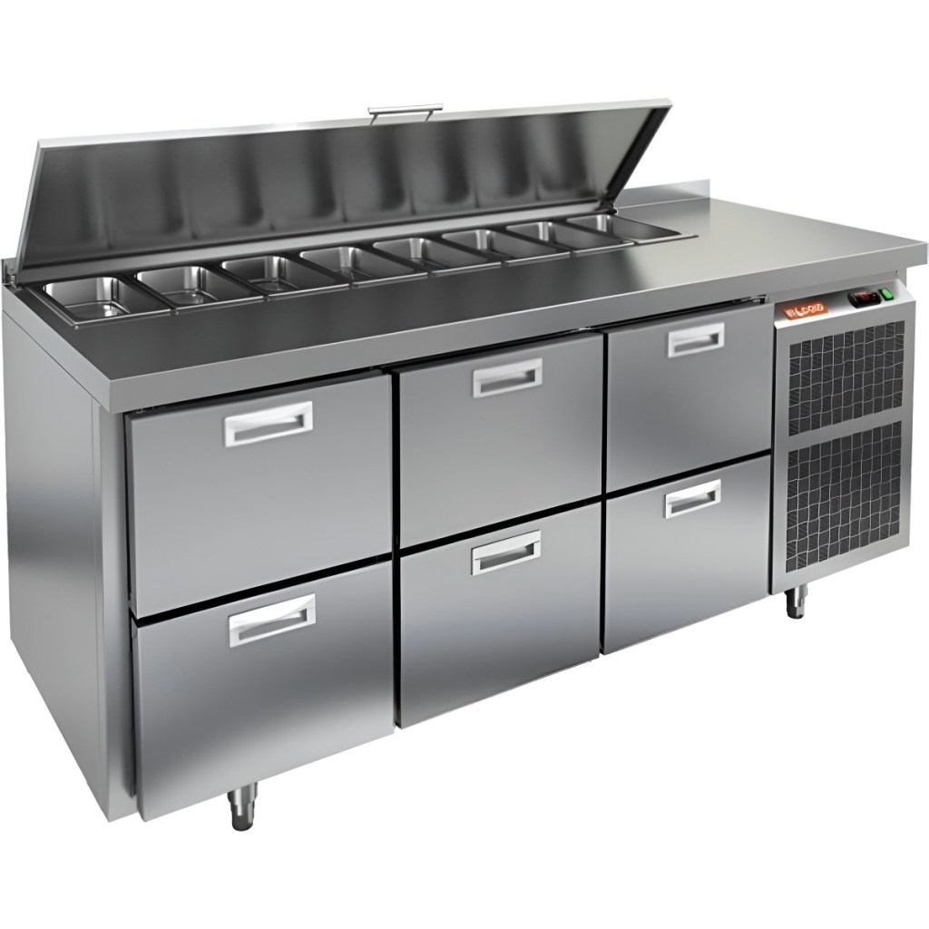 Каталог оборудования Холодильное оборудованиеСтолы охлаждаемыеСтолы холодильные для салатовСтол холодильный для салатов HiCold SL1-222SN (1/3) с крышкой Стол холодильный для салатов HiCold SL1-222SN (1/3) с крышкой Код товара: 064-846 Поделиться: WhatsAppTelegram СравнитьДобавить в КПВ избранное 0 259 642 ₽ В корзину 0 шт Под заказСамовывоз сегодня бесплатно Взять в кредит Купить в лизинг Получить консультацию в WhatsApp Описание Характеристики Отзывы 0 Стол холодильный для салатов HiCold SL1-222SN (1/3) предназначен для использования на предприятиях общественного питания и торговли. Он объединяет рабочую поверхность и охлаждаемый отсек, что делает его удобным решением для хранения, охлаждения и подготовки ингредиентов при приготовлении салатов, пиццы и других блюд. Такая конструкция позволяет повару работать быстрее и эффективнее, так как все необходимые продукты находятся под рукой. Корпус и столешница выполнены из прочной нержавеющей стали, устойчивой к коррозии и легко поддающейся санитарной обработке.Металлическая крышка защищает продукты от загрязнений и сохраняет их свежесть. Особенности модели: Электронная панель управления — точная настройка температурного режима. 6 выдвижных ящика — быстрое размещение и замена продуктов. Вместимость салат-бара — до 8 гастроемкостей глубиной до 100 мм. Автоматические доводчики — комфорт при загрузке/выгрузке. Легкозаменяемые магнитные уплотнители — надежная герметичность. Открытая агрегатная часть — быстрый доступ для обслуживания. Регулируемые по высоте ножки — устойчивость даже на неровном полу. Толщина столешницы, борта и теплоизоляции — 50 мм, что обеспечивает прочность и энергоэффективность конструкции. HiCold SL1-222SN (1/3) — практичное и удобное решение для профессиональной кухни, обеспечивающее удобную подготовку и хранение ингредиентов.Изображение товара, представленного на фото, может отличаться от его фактического вида. Показать все Габаритные размеры1835×600×850 ммДиапазон рабочей температурыот +2 до +10 °CРасположение агрегатаБоковое Материал столешницыНержавеющая Тип столаС ящиками Объём435 лТип гастроемкостейGN 1/3 Количество ящиков6 штНапряжение220 ВМощность0,46 кВтТип охлажденияДинамическое Тип оттайкиАвтоматическая СтолешницаС бортом Габариты в упаковке2000×750×1000 ммВес нетто120 кгВес брутто175 кгБрендHicold Оставить отзыв Еще никто не оставил отзыв на этот товар Ранее просмотрено Под заказ 152 002 ₽ Стол холодильный для салатов HiCold SLE2-111SN (1/6) О З с крышкой Под заказ 163 162 ₽ Стол холодильный для салатов HiCold SL1-111SN (1/3) О без крышки