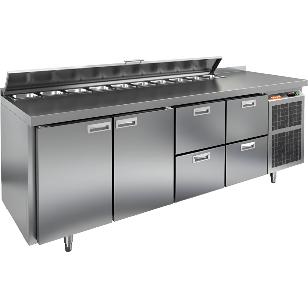 Каталог оборудования Холодильное оборудованиеСтолы охлаждаемыеСтолы холодильные для салатовСтол холодильный для салатов HiCold SL1-332GN (1/3) с крышкой Стол холодильный для салатов HiCold SL1-332GN (1/3) с крышкой Код товара: 064-851 Поделиться: WhatsAppTelegram СравнитьДобавить в КПВ избранное 0 290 692 ₽ В корзину 0 шт Под заказСамовывоз сегодня бесплатно Взять в кредит Купить в лизинг Получить консультацию в WhatsApp Описание Характеристики Отзывы 0 Инструкции 1 Стол холодильный для салатов HiCold SL1-332GN (1/3) предназначен для использования на предприятиях общественного питания и торговли. Он объединяет рабочую поверхность и охлаждаемый отсек, что делает его удобным решением для хранения, охлаждения и подготовки ингредиентов при приготовлении салатов, пиццы и других блюд. Такая конструкция позволяет повару работать быстрее и эффективнее, так как все необходимые продукты находятся под рукой. Корпус и столешница выполнены из прочной нержавеющей стали, устойчивой к коррозии и легко поддающейся санитарной обработке. Металлическая крышка защищает продукты от загрязнений и сохраняет их свежесть. Особенности модели: Электронная панель управления — точная настройка температурного режима. 8 выдвижных ящика — быстрое размещение и замена продуктов. Вместимость салат-бара — до 8 гастроемкостей глубиной до 100 мм. Автоматические доводчики — комфорт при загрузке/выгрузке. Легкозаменяемые магнитные уплотнители — надежная герметичность. Открытая агрегатная часть — быстрый доступ для обслуживания. Регулируемые по высоте ножки — устойчивость даже на неровном полу. Толщина столешницы, борта и теплоизоляции — 50 мм, что обеспечивает прочность и энергоэффективность конструкции. HiCold SL1-332GN (1/3) — практичное и удобное решение для профессиональной кухни, обеспечивающее удобную подготовку и хранение ингредиентов.Изображение товара, представленного на фото, может отличаться от его фактического вида. Показать все Габаритные размеры1835×700×850 ммДиапазон рабочей температурыот +2 до +10 °CРасположение агрегатаБоковое Материал столешницыНержавеющая Тип столаС дверьми и ящиками Тип двериГлухая Объём505 лКоличество дверей2 штТип гастроемкостейGN 1/3 Количество ящиков6 штРазмер полки530×325 ммНапряжение220 ВМощность0,46 кВтТип охлажденияДинамическое Тип оттайкиАвтоматическая СтолешницаС бортом Габариты в упаковке2000×850×1000 ммВес нетто120 кгВес брутто140 кгБрендHicold Оставить отзыв Еще никто не оставил отзыв на этот товар Декларация о соответствии.pdf Ранее просмотрено Под заказ 151 462 ₽ Стол холодильный для салатов HiCold SLS2-11GN (1/6) с крышкой Под заказ 178 192 ₽ Стол холодильный для салатов HiCold SLE1-112GN (1/3) О с крышкой Под заказ 238 582 ₽ Стол холодильный для салатов HiCold SLE2-222SN (1/6) О с крышкой
