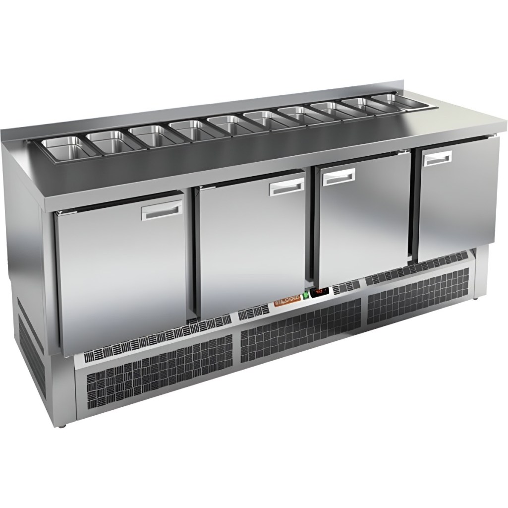 Каталог оборудования Холодильное оборудованиеСтолы охлаждаемыеСтолы холодильные для салатовСтол холодильный для салатов HiCold SLE1-1111SN (1/3) без крышки Стол холодильный для салатов HiCold SLE1-1111SN (1/3) без крышки Код товара: 064-546 Поделиться: WhatsAppTelegram 0 Цена по запросу Получить консультацию в WhatsApp Описание Характеристики Отзывы 0 Инструкции 2 Стол холодильный для салатов HiCold SLE1-1111SN (1/3) без крышки предназначен для предприятий общественного питания и торговли. Он позволяет хранить и обрабатывать ингредиенты для пиццы, салатов и других блюд, а также охлаждать и кратковременно хранить скоропортящиеся продукты и напитки. Модель совмещает рабочую поверхность и охлаждаемый объем, что обеспечивает удобство работы повара: все необходимые компоненты всегда под рукой. Корпус и столешница выполнены из нержавеющей стали, что гарантирует долговечность и простоту ухода. Особенности: Динамическая система охлаждения — равномерное распределение температуры по всему объему. Автоматическая оттайка — упрощает уход за оборудованием. Электронная панель управления — удобная настройка температуры и режимов работы. 4 вместительные внутренние полки формата GN 1/1 — оптимальное хранение ингредиентов. Автоматические доводчики дверей с фиксатором открытого положения — комфорт и безопасность работы. Легкозаменяемые магнитные уплотнители — простота обслуживания. Открытая агрегатная часть — облегчает доступ для обслуживания. Регулируемые по высоте ножки — адаптация к рабочей поверхности. Размер полки: 430×325 мм (GN 1/1) Максимальная глубина гастроемкостей: 100 мм Столешница с бортом, без крышки: толщина столешницы и теплоизоляции — 50 мм, высота борта — 50 мм HiCold SLE1-1111SN (1/3) без крышки — надежный и удобный стол для профессиональной кухни. Он обеспечивает эффективное охлаждение и хранение ингредиентов, а комбинированная рабочая поверхность с холодильным объемом упрощает работу повара, делая процесс приготовления быстрее и удобнее.Изображение товара, представленного на фото, может отличаться от его фактического вида. Показать все Габаритные размеры1970×700×800 ммДиапазон рабочей температурыот +2 до +10 °CРасположение агрегатаНижнее Материал столешницыНержавеющая Тип столаС дверьми Тип двериГлухая Объём430 лКоличество дверей4 штТип гастроемкостейGN 1/3 Размер полки430×325 ммНапряжение220 ВМощность0,46 кВтТип охлажденияДинамический Тип оттайкиАвтоматическая СтолешницаС бортом Вес нетто131 кгВес брутто185 кгБрендHicold Оставить отзыв Еще никто не оставил отзыв на этот товар Паспорт на HICOLD SLE1-1111SN (1/3).pdfДекларация о соответствии.pdf Ранее просмотрено Под заказ 171 802 ₽ Стол холодильный для салатов HiCold SLE2-1111GN (1/6) О с крышкой Под заказ 146 692 ₽ Стол холодильный для салатов HiCold SLE1-11GN (1/3) М с крышкой Под заказ 235 521 ₽ Стол холодильный для салатов HiCold SL1-33GN (1/3) с крышкой Под заказ 163 162 ₽ Стол холодильный для салатов HiCold SL1-111SN (1/3) без крышки Под заказ 143 361 ₽ Стол холодильный для салатов HiCold SLE1-111GN (1/3) О без крышки Под заказ 140 032 ₽ Стол холодильный для салатов HiCold SL2-11SN (1/6) без крышки Под заказ 164 961 ₽ Стол холодильный для салатов HiCold SL2-11SN (1/6) М с крышкой
