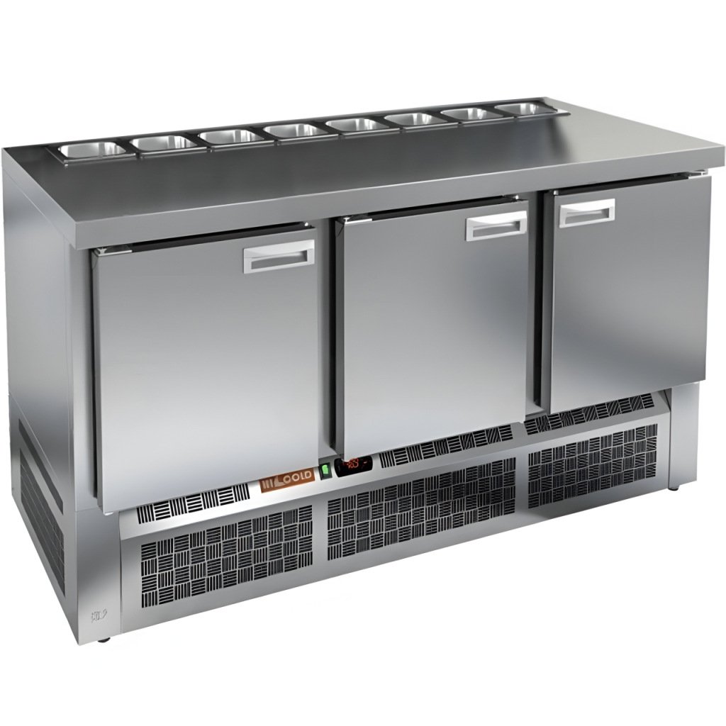 Каталог оборудования Холодильное оборудованиеСтолы охлаждаемыеСтолы холодильные для салатовСтол холодильный для салатов HiCold SLE1-111GN (1/3) без крышки Стол холодильный для салатов HiCold SLE1-111GN (1/3) без крышки Код товара: 064-540 Поделиться: WhatsAppTelegram СравнитьДобавить в КПВ избранное 0 143 361 ₽ В корзину 0 шт Под заказСамовывоз сегодня бесплатно Взять в кредит Купить в лизинг Получить консультацию в WhatsApp Описание Характеристики Отзывы 0 Инструкции 2 Стол холодильный для салатов HiCold SLE1-111SN (1/3) без крышки предназначен для предприятий общественного питания и торговли. Он позволяет хранить и обрабатывать ингредиенты для пиццы, салатов и других блюд, а также охлаждать и кратковременно хранить скоропортящиеся продукты и напитки. Модель совмещает рабочую поверхность и охлаждаемый объем, что обеспечивает удобство работы повара: все необходимые компоненты всегда под рукой. Корпус и столешница выполнены из нержавеющей стали, что гарантирует долговечность и простоту ухода. Особенности: Динамическая система охлаждения — равномерное распределение температуры по всему объему. Автоматическая оттайка — упрощает уход за оборудованием. Электронная панель управления — удобная настройка температуры и режимов работы. 3 вместительные внутренние полки формата GN 1/1 — оптимальное хранение ингредиентов. Автоматические доводчики дверей с фиксатором открытого положения — комфорт и безопасность работы. Легкозаменяемые магнитные уплотнители — простота обслуживания. Открытая агрегатная часть — облегчает доступ для обслуживания. Регулируемые по высоте ножки — адаптация к рабочей поверхности. Размер полки: 430×325 мм (GN 1/1) Максимальная глубина гастроемкостей: 100 мм Столешница с бортом, без крышки: толщина столешницы и теплоизоляции — 50 мм, высота борта — 50 мм HiCold SLE1-111SN (1/3) без крышки — надежный и удобный стол для профессиональной кухни. Он обеспечивает эффективное охлаждение и хранение ингредиентов, а комбинированная рабочая поверхность с холодильным объемом упрощает работу повара, делая процесс приготовления быстрее и удобнее.Изображение товара, представленного на фото, может отличаться от его фактического вида. Показать все Габаритные размеры1485×700×800 ммДиапазон рабочей температурыот +2 до +10 °CРасположение агрегатаНижнее Материал столешницыНержавеющая Тип столаС дверьми Тип двериГлухая Объём375 лКоличество дверей3 штТип гастроемкостейGN 1/3 Размер полки530×325 ммНапряжение220 ВМощность0,46 кВтТип охлажденияДинамический Тип оттайкиАвтоматическая СтолешницаС бортом Вес нетто135 кгВес брутто195 кгБрендHicold Оставить отзыв Еще никто не оставил отзыв на этот товар Паспорт на HICOLD SLE1-111SN.pdfДекларация о соответствии.pdf Ранее просмотрено Под заказ 121 041 ₽ Стол холодильный для салатов HiCold SLE2-11SN (1/6) без крышки Под заказ 174 051 ₽ Стол холодильный для салатов HiCold SLE3-111GN высокое стекло Под заказ 15 990 ₽ Ванна моечная с бортом МХМ МБ-2-0,3-0,53/1,01 (AISI 430, t=0,6) Под заказ 154 341 ₽ Стол холодильный для салатов HiCold SLE1-12SN (1/3) с крышкой
