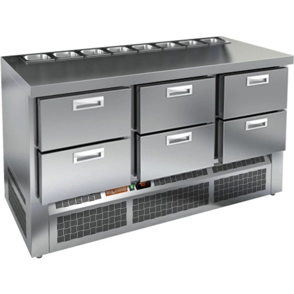 Каталог оборудования Холодильное оборудованиеСтолы охлаждаемыеСтолы холодильные для салатовСтол холодильный для салатов HiCold SLE2-222GN (1/6) О без крышки Стол холодильный для салатов HiCold SLE2-222GN (1/6) О без крышки Код товара: 064-890 Поделиться: WhatsAppTelegram СравнитьДобавить в КПВ избранное 0 235 882 ₽ В корзину 0 шт Под заказСамовывоз сегодня бесплатно Взять в кредит Купить в лизинг Получить консультацию в WhatsApp Описание Характеристики Отзывы 0 Стол холодильный для салатов HiCold SLE2-222GN (1/6) О без крышки — это профессиональный салатный стол, предназначенный для использования в кафе, ресторанах, пиццериях и других предприятиях общественного питания. Он совмещает в себе просторную рабочую поверхность и охлаждаемый объем, обеспечивая удобство и эффективность при приготовлении различных блюд — от салатов до пиццы. Благодаря корпусу и столешнице из нержавеющей стали, оборудование устойчиво к коррозии, легко очищается и соответствует санитарным требованиям. Ключевые особенности: Электронная панель управления — обеспечивает точное регулирование температуры и удобство в эксплуатации. 6 выдвижных ящиков — обеспечивают удобное распределение ингредиентов и быстрый доступ к ним в процессе работы. Салат-бар вмещает до 8 гастроемкостей — оптимален для широкого ассортимента заготовок. Автоматические доводчики дверей с фиксацией — повышают удобство использования, особенно при загрузке и выгрузке продуктов. Магнитные уплотнители — легко заменяются и обеспечивают плотное прилегание, предотвращая утечку холода. Открытая агрегатная часть — облегчает техническое обслуживание. Регулируемые ножки — позволяют установить стол на любой поверхности, компенсируя неровности пола. Максимальная глубина гастроемкостей — 100 мм — подходит для хранения различных типов продуктов. Столешница толщиной 50 мм без борта — полноценная рабочая зона. Теплоизоляция толщиной 50 мм — сохраняет стабильный температурный режим и снижает энергозатраты. HiCold SLE2-222GN (1/6) О без крышки — это функциональный и вместительный салатный стол, который идеально подходит для профессиональных кухонь с интенсивной загрузкой. Он сочетает в себе надежность, удобство и продуманную конструкцию для максимальной производительности на рабочем месте.Изображение товара, представленного на фото, может отличаться от его фактического вида. Показать все Габаритные размеры1485×700×850 ммДиапазон рабочей температурыот +2 до +10 °CРасположение агрегатаНижнее Материал столешницыНержавеющая Тип столаС ящиками Объём375 лТип гастроемкостейGN 1/6 Количество ящиков6 штНапряжение220 ВМощность0,2 кВтТип охлажденияДинамическое Тип оттайкиАвтоматическая СтолешницаБез борта Габариты в упаковке1700×850×1080 ммВес нетто115 кгВес брутто160 кгБрендHicold Оставить отзыв Еще никто не оставил отзыв на этот товар Ранее просмотрено Под заказ 255 861 ₽ Стол холодильный для салатов HiCold SL2-222GN (1/6) без крышки Под заказ 126 981 ₽ Стол холодильный для салатов HiCold SLE2-11SN (1/6) З с крышкой