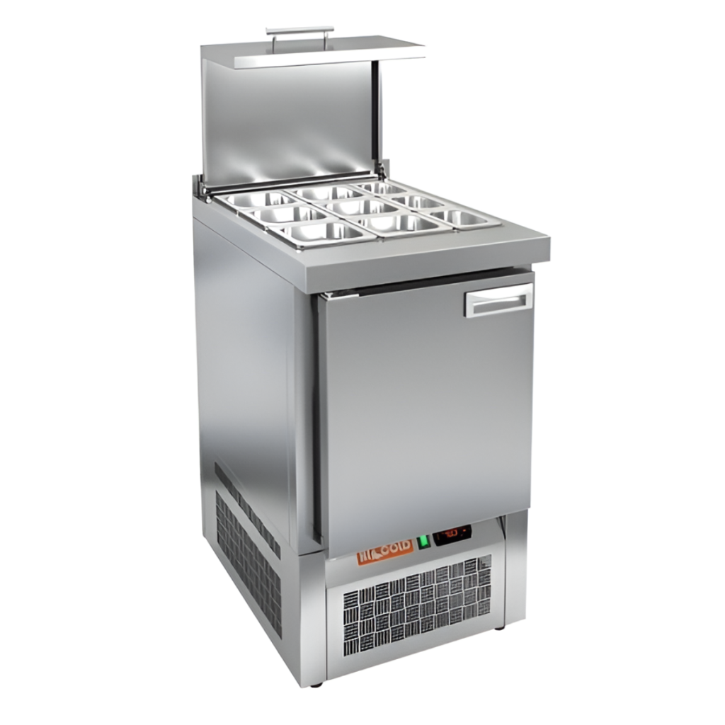 Каталог оборудования Холодильное оборудованиеСтолы охлаждаемыеСтолы холодильные для салатовСтол холодильный для салатов HiCold SLE3-1GN с крышкой Стол холодильный для салатов HiCold SLE3-1GN с крышкой Код товара: 064-942 Поделиться: WhatsAppTelegram СравнитьДобавить в КПВ избранное 0 100 432 ₽ В корзину 0 шт Под заказСамовывоз сегодня бесплатно Взять в кредит Купить в лизинг Получить консультацию в WhatsApp Описание Характеристики Отзывы 0 Инструкции 2 Стол холодильный для салатов HiCold SLE3-1GN с крышкой предназначен для охлаждения и кратковременного хранения ингредиентов, используемых при приготовлении салатов, закусок, сэндвичей и других блюд. Он широко применяется на предприятиях общественного питания и торговли. Модель объединяет в себе рабочую поверхность и охлаждаемый отсек, обеспечивая удобство, экономию места и быстрое взаимодействие с ингредиентами в процессе приготовления. Корпус и столешница изготовлены из нержавеющей стали, что гарантирует долговечность конструкции, устойчивость к коррозии и соответствие санитарным нормам. Металлическая крышка защищает продукты от загрязнений и сохраняет их свежесть. Особенности модели: Электронная панель управления — для точной настройки температуры Вместительная внутренняя полка формата GN 1/1 — для хранения различных продуктов Вместимость салат-бара: 6 гастроемкостей GN 1/6 и 3 GN 1/9 Поддержка гастроемкостей глубиной до 100 мм Автоматические доводчики дверей с фиксацией открытого положения Легкозаменяемые магнитные уплотнители — поддерживают герметичность Открытая агрегатная часть — упрощает техническое обслуживание Регулируемые по высоте ножки — для устойчивой установки Столешница толщиной 50 мм Борт высотой 50 мм Эффективная теплоизоляция — 50 мм HiCold SLE3-1GN с крышкой — компактный и функциональный салатный стол, который сочетает охлаждение и удобное рабочее пространство. Подходит для профессиональных кухонь, обеспечивая быстрый доступ к ингредиентам и оптимальные условия их хранения.Изображение товара, представленного на фото, может отличаться от его фактического вида. Показать все Габаритные размеры565×700×850 ммДиапазон рабочей температурыот +2 до +10 °CРасположение агрегатаНижнее Материал столешницыНержавеющая Тип столаС дверьми Тип двериГлухая Объём110 лКоличество дверей1 штТип гастроемкостейGN 1/9, GN 1/6 Размер полки530×325 ммНапряжение220 ВМощность0,15 кВтТип охлажденияДинамическое Тип оттайкиАвтоматическая СтолешницаС бортом Вес нетто58 кгВес брутто95 кгБрендHicold Оставить отзыв Еще никто не оставил отзыв на этот товар Паспорт на HICOLD SLE3-1GN.pdfДекларация о соответствии.pdf Ранее просмотрено Под заказ 978 917 ₽ Чиллер водяного охлаждения Belluna X28 (с зимним комплектом до -40°С) Под заказ 13 768 ₽ Ванна моечная МХМ М-1-0,3-0,53/1,01 (AISI 430, t=0,6)