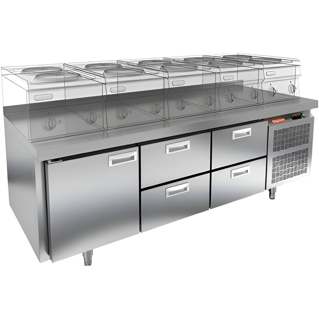 Каталог оборудования Холодильное оборудованиеСтолы охлаждаемыеСтолы холодильные под тепловое оборудованиеСтол охлаждаемый HiCold SN 222/TN LT под тепловое оборудование Стол охлаждаемый HiCold SN 222/TN LT под тепловое оборудование Код товара: 065-548 Поделиться: WhatsAppTelegram СравнитьДобавить в КПВ избранное 0 223 642 ₽ В корзину 0 шт Под заказСамовывоз сегодня бесплатно Взять в кредит Купить в лизинг Получить консультацию в WhatsApp Описание Характеристики Отзывы 0 Инструкции 2 Стол охлаждаемый HiCold SN 222/TN LT SH под тепловое оборудование предназначен для обработки ингредиентов и временного хранения скоропортящихся продуктов и напитков на предприятиях общественного питания и торговли. Устройство совмещает функции рабочей поверхности и холодильной камеры. Столешница рассчитана на установку теплового оборудования: под рабочей поверхностью встроен ДСП-лист, который укрепляет конструкцию и препятствует проникновению тепла внутрь. Такое решение обеспечивает дополнительную жесткость, позволяет рационально использовать рабочее пространство и повышает эффективность работы на кухне. Особенности: 6 выдвижных ящика — обеспечивают удобный доступ к продуктам и инвентарю Автоматические доводчики дверей с фиксатором открытого положения повышают эргономику и способствуют сохранению холода. Легкозаменяемые магнитные уплотнители обеспечивают плотное прилегание дверей и лёгкость в обслуживании. Открытая агрегатная часть упрощает доступ к компрессору при техническом обслуживании. Регулируемые по высоте низкие ножки — удобная установка и устойчивость стола даже на неровной поверхности. Толщина столешницы — 50 мм обеспечивает прочность рабочей поверхности. Высота борта — 50 мм предотвращает падение продуктов и инвентаря. Толщина теплоизоляции — 50 мм способствует энергоэффективности и стабильному температурному режиму. HiCold SN 222/TN LT SH — это надёжное и удобное оборудование, сочетающее охлаждение и рабочее пространство. Благодаря продуманной конструкции и совместимости с гастроемкостями GN 1/1, стол станет практичным решением для кухни любого профессионального уровня.Изображение товара, представленного на фото, может отличаться от его фактического вида. Показать все Габаритные размеры1835×600×675 ммДиапазон рабочей температурыот -2 до +10 °CМатериал столешницыНержавеющая Расположение агрегатаБоковое Объём320 лТип столаС ящиками Тип двериГлухая Количество ящиков6 штРазмер полки430×325 ммНапряжение220 ВМощность0,5 кВтТип охлажденияДинамический Тип оттайкиАвтоматическая СтолешницаС бортом Габариты в упаковке2380×740×970 ммВес нетто115 кгВес брутто155 кгБрендHicold Оставить отзыв Еще никто не оставил отзыв на этот товар Паспорт на HICOLD SN 222/TN LT SH.pdfДекларация о соответствии.pdf Похожие товары Перейти в каталог В наличии 128 777 ₽ Стол морозильный Cooleq GN3200BT с бортом Под заказ 166 404 ₽ Стол морозильный Abat СХН-70-02 без борта (дверь, дверь, дверь) С этим товаром покупают В наличии 140 675 ₽ Шкаф холодильный универсальный Polair CV 110-S Под заказ 76 010 ₽ Газовый лавовый гриль Abat ГЛК-40Н Ранее просмотрено Под заказ 169 012 ₽ Стол морозильный HiCold GN 111/BT LT под тепловое оборудование Под заказ 193 492 ₽ Стол охлаждаемый HiCold GN 122/TN LT О под тепловое оборудование Под заказ 191 692 ₽ Стол охлаждаемый HiCold GN 122/TN LT SH под тепловое оборудование