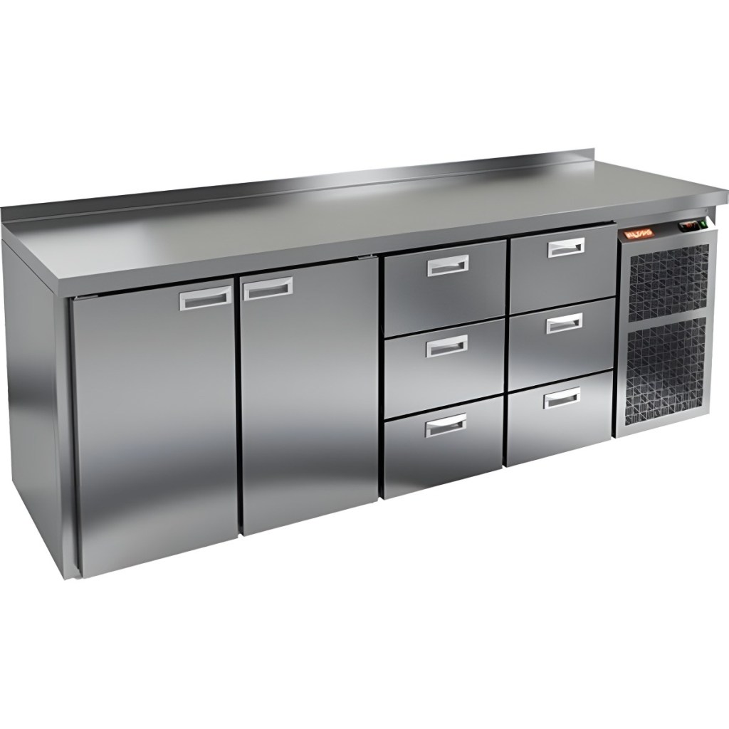 Каталог оборудования Холодильное оборудованиеСтолы охлаждаемыеСтолы холодильные среднетемпературныеСтол холодильный среднетемпературный HiCold BN 1133 BR2 TN Стол холодильный среднетемпературный HiCold BN 1133 BR2 TN Код товара: 062-319 Поделиться: WhatsAppTelegram СравнитьДобавить в КПВ избранное 0 275 031 ₽ В корзину 0 шт В наличииСамовывоз сегодня бесплатно Взять в кредит Купить в лизинг Получить консультацию в WhatsApp Описание Характеристики Отзывы 0 Стол холодильный среднетемпературный HiCold BN 1133 BR2 TN — это многофункциональное профессиональное оборудование, предназначенное для предприятий общественного питания и торговли. Он обеспечивает удобную поверхность для раскатки теста и подготовки продуктов, а также выполняет функцию охлаждаемого шкафа для кратковременного хранения скоропортящихся ингредиентов и напитков. Устройство оснащено удобной электронной панелью управления и выполнено из нержавеющей стали, что гарантирует долговечность и простоту в уходе. Комплектация: 2 полки размером 330×325 мм. Особенности модели: Надёжный компрессор от мирового производителя — стабильная и эффективная работа. Принудительная вентиляция — обеспечивает равномерное распределение холода во всём объёме камеры. Цельнозаливной корпус с теплоизоляцией 50 мм — сводит к минимуму потери холода, придаёт конструкции прочность. Автоматические дверные доводчики с фиксатором — для комфортного и безопасного использования. Магнитные уплотнители, которые легко заменить при необходимости — сохраняют герметичность. Регулируемые по высоте ножки — удобная установка на любой поверхности. Упрощённый доступ к агрегату — быстрое техническое обслуживание без лишних усилий. Толщина столешницы — 50 мм, высота борта — 50 мм — прочная и безопасная рабочая зона. Поддерживает работу при температуре окружающей среды от +12 до +37 °C. HiCold BN 1133 BR2 TN — это надёжный и функциональный холодильный стол, сочетающий в себе рабочую поверхность и охлаждаемое хранение. Он обеспечивает высокую производительность, удобство в эксплуатации и соответствует требованиям современной профессиональной кухни. Отличный выбор для кафе, ресторанов и пищевых производств.Изображение товара, представленного на фото, может отличаться от его фактического вида. Показать все Габаритные размеры2280×500×850 ммДиапазон рабочей температурыот -2 до +10 °CРасположение агрегатаБоковое Материал столешницыНержавеющая Тип столаС дверьми и ящиками Тип двериГлухая Объём530 лКоличество дверей2 штКоличество полок2 штКоличество ящиков6 штРазмер полки330×325 ммНапряжение220 ВМощность0,48 кВтТип охлажденияДинамический Тип оттайкиАвтоматическая СтолешницаС бортом Вес нетто145 кгВес брутто165 кгБрендHicoldВсе холодильные столы HicoldВсе нержавеющие холодильные столы Все холодильные столы с бортом Оставить отзыв Еще никто не оставил отзыв на этот товар Похожие товары Перейти в каталог Под заказ 79 911 ₽ Стол холодильный среднетемпературный HiCold GN 1/TN W Под заказ 104 947 ₽ Стол холодильный среднетемпературный Abat СХС-70 с бортом (дверь) С этим товаром покупают В наличии 96 390 ₽ Шкаф холодильный Полюс Carboma R560 В наличии 58 095 ₽ Витрина холодильная для ингредиентов HICOLD VRTU 1835 1/3 Ранее просмотрено Под заказ 204 000 ₽ Горка холодильная Dazzl Vega 080 H210 Plug-in 125