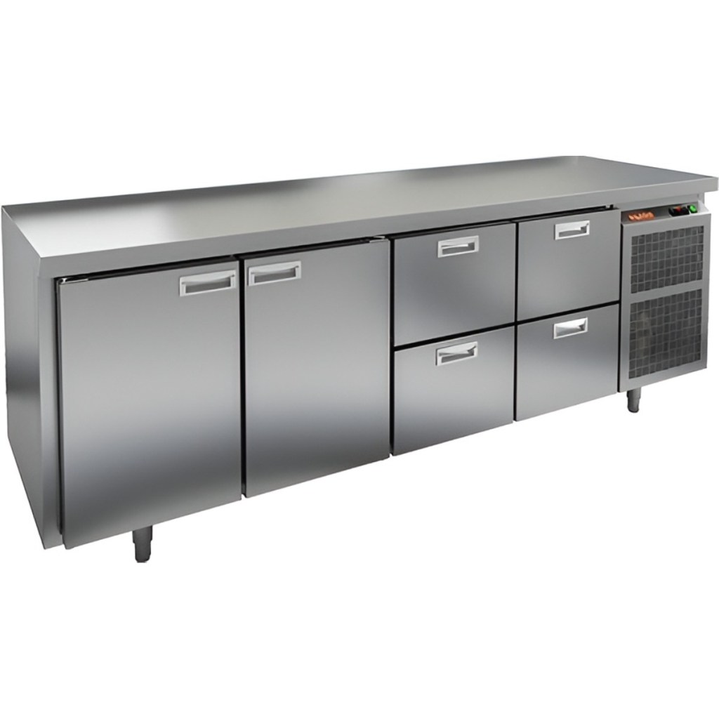 Каталог оборудования Холодильное оборудованиеСтолы охлаждаемыеСтолы холодильные среднетемпературныеСтол холодильный среднетемпературный HiCold GN 1122/TN О Стол холодильный среднетемпературный HiCold GN 1122/TN О Код товара: 065-459 Поделиться: WhatsAppTelegram СравнитьДобавить в КПВ избранное 0 228 591 ₽ В корзину 0 шт Под заказСамовывоз сегодня бесплатно Взять в кредит Купить в лизинг Получить консультацию в Max Описание Характеристики Отзывы 0 Инструкции 2 Стол холодильный среднетемпературный HiCold GN 1122/TN О предназначен для хранения продуктов и подготовки ингредиентов в заведениях общественного питания и торговли. Удобная электронная панель управления, прочный корпус и продуманная конструкция делают эту модель оптимальным выбором для профессиональной кухни. В комплект входят 2 полки размером 530×325 мм. Ключевые особенности: 2 распашные двери и 4 выдвижные секции — рациональная организация внутреннего пространства и быстрый доступ к содержимому. Электронная панель управления — интуитивное управление температурой. Автоматические доводчики дверей с фиксаторами открытого положения — удобно при частом использовании. Легкозаменяемые магнитные уплотнители — надёжная герметизация и лёгкое техническое обслуживание. Регулируемые по высоте ножки — устойчивость на любой поверхности. Корпус и столешница из нержавеющей стали — прочность, долговечность и соответствие санитарным требованиям. Столешница без борта, толщина 50 мм — увеличенная рабочая площадь, устойчивая к нагрузкам и механическому воздействию. Толщина теплоизоляции — 50 мм — отличная теплоизоляция и прочность. Устойчив к внешним условиям при температуре окружающей среды от 12 до 37 °C. HiCold GN 1122/TN О — это надёжный и функциональный холодильный стол, разработанный для интенсивной профессиональной эксплуатации. Удачное сочетание дверей и выдвижных секций делает его универсальным решением для хранения различных категорий продуктов, обеспечивая удобство работы и соблюдение температурного режима. Изображение товара, представленного на фото, может отличаться от его фактического вида. Показать все Габаритные размеры2280×700×850 ммДиапазон рабочей температурыот -2 до +10 °CРасположение агрегатаБоковое Материал столешницыНержавеющая Тип столаС дверьми и ящиками Тип двериГлухая Объём660 лКоличество дверей2 штКоличество полок2 штКоличество ящиков4 штРазмер полки530×325 ммНапряжение220 ВМощность0,48 кВтТип охлажденияДинамический Тип оттайкиАвтоматическая СтолешницаБез борта Габариты в упаковке2420×850×1000 ммВес нетто150 кгВес брутто190 кгБрендHicoldВсе холодильные столы HicoldВсе нержавеющие холодильные столы Все холодильные столы без борта Оставить отзыв Еще никто не оставил отзыв на этот товар Паспорт на HICOLD GN 1122/TN О.pdfДекларация о соответствии.pdf Похожие товары Перейти в каталог Под заказ 197 991 ₽ Стол холодильный среднетемпературный HiCold GNG 1111 HT В наличии 139 401 ₽ Стол холодильный среднетемпературный HiCold GN 1111 BR2 TN В наличии 113 121 ₽ Стол холодильный среднетемпературный HiCold GN 1111/TN W В наличии 119 067 ₽ Стол холодильный среднетемпературный Polair TM4GN-GС С этим товаром покупают Под заказ 130 257 ₽ Шкаф комбинированный Carboma RF 700 Под заказ 68 464 ₽ Витрина холодильная для ингредиентов HICOLD VRX 1600 1/3 Ранее просмотрено Под заказ 218 691 ₽ Стол холодильный среднетемпературный HiCold GNE 1111/TN BOX Под заказ 131 391 ₽ Стол холодильный среднетемп