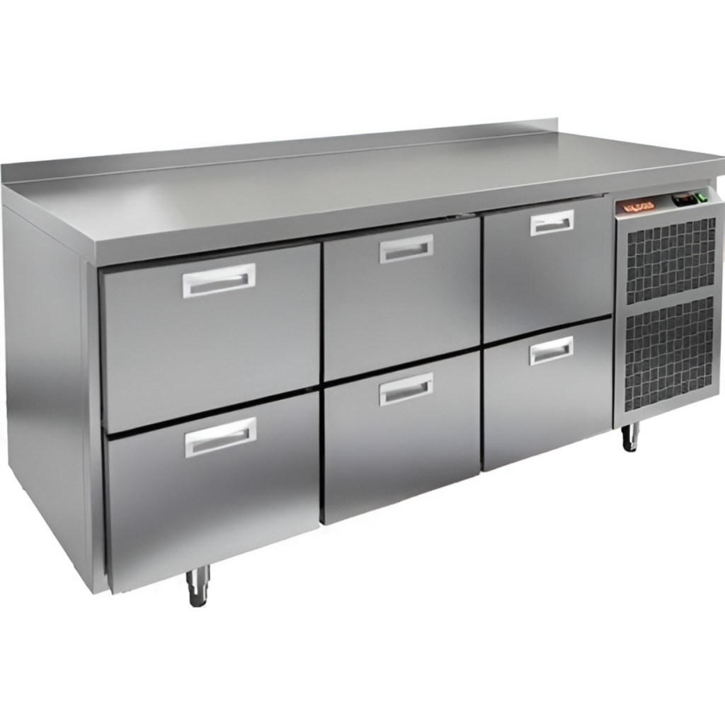 Каталог оборудования Холодильное оборудованиеСтолы охлаждаемыеСтолы холодильные среднетемпературныеСтол холодильный среднетемпературный HiCold SN 222/TN Стол холодильный среднетемпературный HiCold SN 222/TN Код товара: 065-557 Поделиться: WhatsAppTelegram СравнитьДобавить в КПВ избранное 0 229 942 ₽ В корзину 0 шт Под заказСамовывоз сегодня бесплатно Взять в кредит Купить в лизинг Получить консультацию в WhatsApp Описание Характеристики Отзывы 0 Инструкции 2 Стол холодильный среднетемпературный HiCold SN 222/TN предназначен для обработки продуктов и временного хранения скоропортящихся ингредиентов и напитков на предприятиях общественного питания и торговли. Устройство совмещает функции холодильной камеры и рабочей поверхности, что делает его особенно удобным для профессиональных кухонь. Устройство оснащено электронной панелью управления, обеспечивающей точную настройку температурного режима. Корпус и столешница выполнены из прочной и гигиеничной нержавеющей стали. Особенности: 6 выдвижных ящиков обеспечивают удобный доступ к продуктам и рациональную организацию пространства. Автоматические доводчики дверей с фиксатором открытого положения улучшают эргономику работы и помогают сохранить холод внутри камеры. Легкозаменяемые магнитные уплотнители способствуют герметичности и простоте технического обслуживания. Регулируемые по высоте ножки позволяют адаптировать установку под особенности помещения. Толщина столешницы — 50 мм обеспечивает прочность и надёжную опору при работе. Высота борта — 50 мм предотвращает скатывание предметов с поверхности. Теплоизоляция толщиной 50 мм снижает теплопотери и энергозатраты. Температурный диапазон окружающей среды — от 12 до 37 °C, что делает оборудование универсальным в разных климатических условиях. HiCold SN 222/TN сочетает функциональность, надёжность и простоту в обслуживании. Идеально подходит для кухонь ресторанов, кафе и других заведений общепита, где важно одновременно эффективно хранить продукты и иметь под рукой рабочее пространство.Изображение товара, представленного на фото, может отличаться от его фактического вида. Показать все Габаритные размеры1835×600×850 ммДиапазон рабочей температурыот -2 до +10 °CРасположение агрегатаБоковое Материал столешницыНержавеющая Тип столаС ящиками Объём435 лКоличество ящиков6 штНапряжение220 ВМощность0,46 кВтТип охлажденияДинамический Тип оттайкиАвтоматическая Габариты в упаковке2000×750×1000 ммВес нетто120 кгВес брутто160 кгБрендHicoldВсе холодильные столы HicoldВсе нержавеющие холодильные столы Все холодильные столы с бортом Оставить отзыв Еще никто не оставил отзыв на этот товар Паспорт на HICOLD SN 222/TN.pdfДекларация о соответствии.pdf Похожие товары Перейти в каталог Под заказ 137 619 ₽ Стол холодильный среднетемпературный Polair TD3GN-G Под заказ 108 164 ₽ Стол холодильный среднетемпературный HURAKAN HKN-GN3TN С этим товаром покупают Под заказ 389 300 ₽ Шкаф холодильный для вызревания мяса Polair CS107 Meat (Тип 1) Ранее просмотрено В наличии 230 301 ₽ Стол холодильный среднетемпературный HiCold GN 11112 BR2 TN Под заказ 121 581 ₽ Стол холодильный среднетемпературный HiCold SN 111/TN W О НовинкаПод заказ 208 391 ₽ Стол холодильный среднетемпературный Polair TM3-222-G
