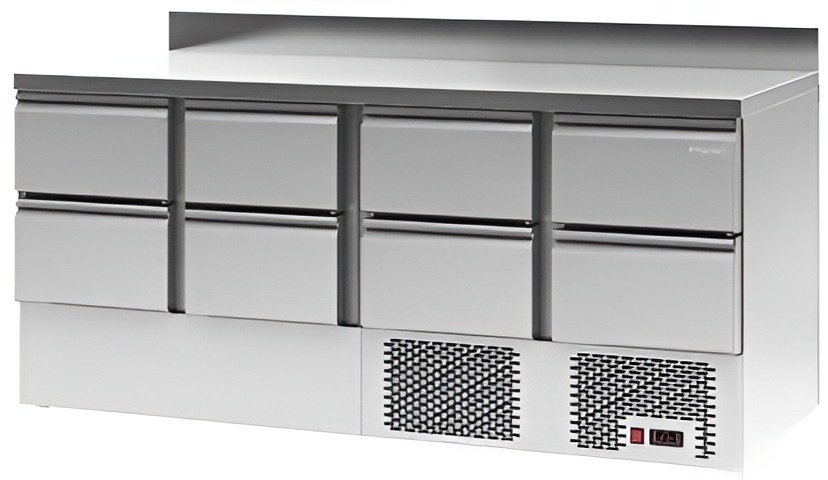 Каталог оборудования Холодильное оборудованиеСтолы охлаждаемыеСтолы холодильные среднетемпературныеСтол холодильный среднетемпературный Polair TMi4GN-2222-G Стол холодильный среднетемпературный Polair TMi4GN-2222-G Код товара: 062-578 Поделиться: WhatsAppTelegram СравнитьДобавить в КПВ избранное 0 265 574 ₽ В корзину 0 шт Под заказСамовывоз сегодня бесплатно Взять в кредит Купить в лизинг Получить консультацию в WhatsApp Описание Характеристики Отзывы 0 Стол холодильный среднетемпературный Polair TMi4GN-2222-G предназначен для хранения продуктов и подготовки ингредиентов на рабочей поверхности на предприятиях общественного питания и торговли. Цельнозаливные корпус и двери изготовлены из прочной стали, что обеспечивает высокую механическую прочность, надежную термоизоляцию, герметичность и долгий срок службы. Оборудование рассчитано на эксплуатацию при температуре окружающей среды до +43 °С и относительной влажности до 80%, что делает его отличным решением для профессиональных кухонь. Особенности: Электронный терморегулятор для точного и стабильного поддержания температуры; Класс защиты IP24, подходящий для работы в условиях повышенной влажности; Регулируемые по высоте ножки для удобства установки и устойчивости; Толщина столешницы — 40 мм, обеспечивающая прочность и устойчивость к нагрузкам; Толщина стенок корпуса — 43 мм для отличной теплоизоляции и долговечности; Тип полок: Gastronorm GN 1/1, удобный для использования стандартной гастроемкости; Оснащен 8 выдвижными ящиками, что значительно упрощает организацию хранения продуктов и обеспечивает быстрый доступ к ингредиентам. Polair TMi4GN-2222-G — это функциональный и надежный холодильный стол, который сочетает продуманную конструкцию с высокой вместимостью и удобством эксплуатации. Наличие восьми ящиков делает его особенно удобным для интенсивной работы на профессиональной кухне, где требуется быстрое и удобное хранение большого количества ингредиентов.Изображение товара, представленного на фото, может отличаться от его фактического вида. Показать все Габаритные размеры1850×700×910 ммДиапазон рабочей температурыот -2 до +10 °CРасположение агрегатаНижнее Материал столешницыНержавеющая Тип столаС ящиками Объём368 лКоличество ящиков8 штНапряжение220 ВМощность0,35 кВтТип охлажденияДинамическое Тип оттайкиАвтоматическая ХладагентR290 СтолешницаС бортом Габариты в упаковке2165×815×1045 ммВес нетто165 кгВес брутто200 кгБрендPolairВсе холодильные столы PolairВсе нержавеющие холодильные столы Все холодильные столы с бортом Оставить отзыв Еще никто не оставил отзыв на этот товар Ранее просмотрено Под заказ 243 167 ₽ Стол холодильный среднетемпературный Polair TMi4GN-0222-G Под заказ 75 291 ₽ Плита индукционная Tatra TIR.47 (серия 700) Под заказ 178 376 ₽ Стол морозильный низкотемпературный Polair TB3GN-002-G В наличии 157 745 ₽ Плита индукционная Tatra TIR.87M (серия 700) Под заказ 553 358 ₽ Льдогенератор чешуйчатого льда Abat ЛГ-620Ч-02 воздушное охлаждение В наличии 92 252 ₽ Плита индукционная Tatra TIR.47M (серия 700) Пульт в комплектеПод заказ 70 125 ₽ Сплит-система холодильная среднетемпературная Арктика СМС 112 (с зимним комплектом)