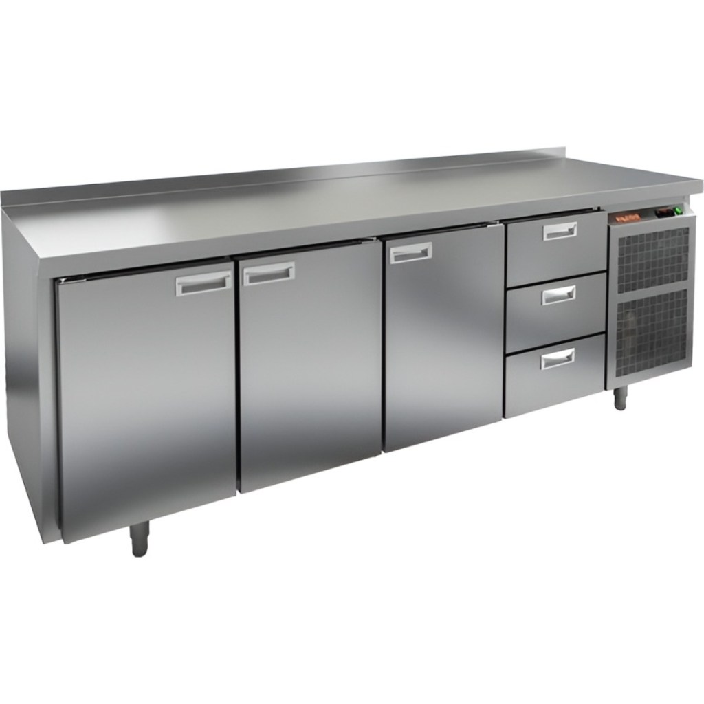 Каталог оборудования Холодильное оборудованиеСтолы охлаждаемыеСтолы морозильные низкотемпературныеСтол морозильный HiCold GN 1113/BT Стол морозильный HiCold GN 1113/BT Код товара: 062-184 Поделиться: WhatsAppTelegram СравнитьДобавить в КПВ избранное 0 252 352 ₽ В корзину 0 шт Под заказСамовывоз сегодня бесплатно Взять в кредит Купить в лизинг Получить консультацию в Max Описание Характеристики Отзывы 0 Инструкции 2 Стол морозильный HiCold GN 1113/BT — профессиональное холодильное оборудование, сочетающее удобную рабочую поверхность и вместительную морозильную камеру. Предназначен для предприятий общественного питания, где требуется качественное хранение замороженных продуктов и удобство при подготовке блюд. Основные особенности: Совместимость с профессиональным оборудованием — полки, направляющие и стойки выполнены по стандарту GN, что обеспечивает полное соответствие гастроёмкостям и кухонным системам. Прочный корпус — цельнозаливной из нержавеющей стали с 50 мм теплоизоляцией, обеспечивающей высокую герметичность и долговечность конструкции. Надёжное управление — электронный блок с несколькими режимами оттаивания для стабильной работы. Улучшенное охлаждение — вентилятор повышенной мощности и принудительная вентиляция по всему объёму камеры обеспечивают быстрое и равномерное охлаждение продуктов. Минимизация обслуживания — интеллектуальное размораживание и термическое выпаривание конденсата снижают необходимость ручного вмешательства. Экономичный компрессор — снижает энергопотребление без ущерба производительности. Удобство сервисного обслуживания — облегчённый доступ к агрегатам. Комфортное использование — двери оснащены петлями-доводчиками для плавного закрытия и предотвращения потерь холода. Защита от примерзания — проволочный электронагреватель (ПЭН), установленный по контуру корпуса. Регулировка высоты — ножки позволяют адаптировать стол к особенностям пола. Технические параметры — нагрузка на полку до 50 кг, высота борта 50 мм, температура окружающей среды от +12 до +32 °C. HiCold GN 1113/BT — это надёжный и функциональный морозильный стол, который обеспечивает высокую эффективность и удобство работы на профессиональной кухне. Его прочная конструкция, энергоэффективность и совместимость с кухонным оборудованием делают эту модель оптимальным решением для ресторанов, кафе и пищевых производств.Изображение товара, представленного на фото, может отличаться от его фактического вида. Показать все Габаритные размеры2280×700×850 ммДиапазон рабочей температурыот -18 до -10 °CРасположение агрегатаБоковое Материал столешницыНержавеющая Тип столаС дверьми и ящиками Тип двериГлухая Объём660 лКоличество дверей3 штКоличество полок3 штКоличество ящиков3 штРазмер полки530×325 ммНапряжение220 ВМощность0,75 кВтТип охлажденияДинамический Тип оттайкиАвтоматическая СтолешницаС бортом Вес нетто154 кгВес брутто169 кгБрендHicoldВсе морозильные столы HicoldВсе морозильные столы с бортом Оставить отзыв Еще никто не оставил отзыв на этот товар Паспорт на HICOLD GN 1113/BT.pdfДекларация о соответствии.pdf Ранее просмотрено Под заказ 253 612 ₽ Стол морозильный HiCold GN 122 BR2 BT В наличии 252 711 ₽ Стол морозильный HiCold BN 122 BR2 BT