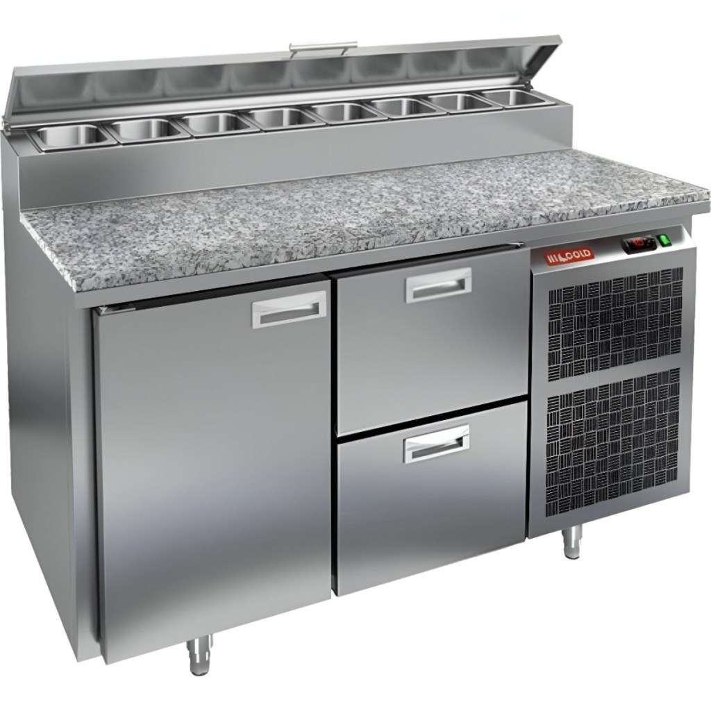 Каталог оборудования Холодильное оборудованиеСтолы охлаждаемыеСтолы холодильные для пиццыСтол холодильный для пиццы HiCold PZ1-12GN (1/3) камень Стол холодильный для пиццы HiCold PZ1-12GN (1/3) камень Код товара: 064-704 Поделиться: WhatsAppTelegram СравнитьДобавить в КПВ избранное 0 238 492 ₽ В корзину 0 шт Под заказСамовывоз сегодня бесплатно Взять в кредит Купить в лизинг Получить консультацию в Max Описание Характеристики Отзывы 0 Инструкции 2 Стол холодильный для пиццы HiCold PZ1-12GN (1/3) — профессиональное оборудование для предприятий общественного питания и торговли. Он объединяет рабочую поверхность для раскатки теста и подготовки ингредиентов с охлаждаемым блоком для кратковременного хранения скоропортящихся продуктов и напитков. Совмещение рабочей поверхности и холодильного объёма обеспечивает удобство и экономию времени — все необходимые компоненты всегда под рукой. Каменная столешница устойчива к механическим повреждениям и легко очищается, что особенно важно для интенсивной эксплуатации. Основные особенности: Каменная столешница и корпус из нержавеющей стали — прочность, долговечность и гигиеничность Динамическая система охлаждения — равномерное распределение холода Автоматическая оттайка — стабильная работа без образования наледи Электронная панель управления — точная настройка температуры 1 дверца и 2 выдвижных ящика — удобная организация внутреннего пространства 1 вместительная полка формата GN 1/1 (размер 530×325 мм) Автоматические доводчики дверей с фиксатором открытого положения — комфорт при работе Легкозаменяемые магнитные уплотнители — поддержание герметичности Открытая агрегатная часть — удобный доступ для обслуживания Регулируемые по высоте ножки — установка на неровных поверхностях Максимальная глубина гастроёмкостей: 100 мм Глубина рабочей поверхности: 324 мм Толщина столешницы и теплоизоляции: 50 мм Вместимость салат-бара: до 7 гастроёмкостей Стол холодильный HiCold PZ1-12GN (1/3) — надёжный и функциональный стол для пиццы и салатов. Прочная конструкция, продуманная организация внутреннего пространства и удобство эксплуатации делают его оптимальным решением для профессиональных кухонь. Изображение товара, представленного на фото, может отличаться от его фактического вида. Показать все Габаритные размеры1390×700×1000 ммДиапазон рабочей температурыот +2 до +10 °CРасположение агрегатаБоковое Материал столешницыГранитная Тип столаС дверьми и ящиками Тип двериГлухая Объём350 лТип гастроемкостейGN 1/3 Количество дверей1 штКоличество ящиков2 штРазмер полки530×325 ммНапряжение220 ВМощность0,2 кВтТип охлажденияДинамическое Тип оттайкиАвтоматическая Габариты в упаковке1550×800×1080 ммВес нетто160 кгВес брутто195 кгБрендHicoldВсе холодильные столы для пиццы Hicold Оставить отзыв Еще никто не оставил отзыв на этот товар Паспорт на HICOLD PZ1-12GN.pdfДекларация о соответствии.pdf Ранее просмотрено В наличии 207 892 ₽ Стол холодильный для пиццы HiCold PZ2-11/GN (1/6H) камень