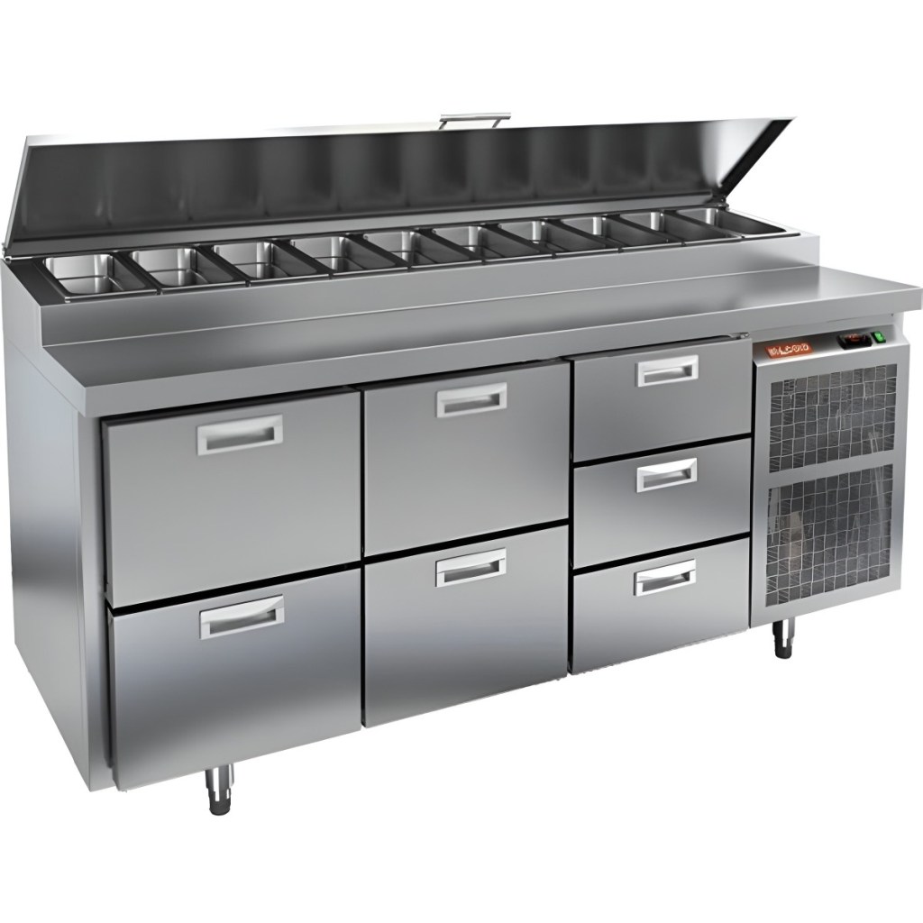 Каталог оборудования Холодильное оборудованиеСтолы охлаждаемыеСтолы холодильные для пиццыСтол холодильный для пиццы HiCold PZ1-223GN (1/3H) Стол холодильный для пиццы HiCold PZ1-223GN (1/3H) Код товара: 064-711 Поделиться: WhatsAppTelegram СравнитьДобавить в КПВ избранное 0 321 471 ₽ В корзину 0 шт Под заказСамовывоз сегодня бесплатно Взять в кредит Купить в лизинг Получить консультацию в WhatsApp Описание Характеристики Отзывы 0 Стол холодильный для пиццы HiCold PZ1-223GN (1/3H) — профессиональное оборудование для предприятий общественного питания и торговли. Он сочетает рабочую поверхность для раскатки теста и подготовки ингредиентов с охлаждаемым блоком для кратковременного хранения скоропортящихся продуктов и напитков. Такое решение обеспечивает максимальное удобство — все необходимые компоненты всегда находятся под рукой. Корпус и столешница выполнены из нержавеющей стали, что гарантирует долговечность, устойчивость к повреждениям и лёгкость ухода. Основные особенности: Нержавеющая столешница и корпус — прочность, гигиеничность и лёгкость очистки Динамическая система охлаждения — равномерное распределение холода Автоматическая оттайка — стабильная работа без образования наледи Электронная панель управления — точная настройка температуры 7 выдвижных ящиков — удобная организация внутреннего пространства без дверцы Автоматические доводчики ящиков — комфорт при работе Легкозаменяемые магнитные уплотнители — поддержание герметичности Открытая агрегатная часть — лёгкий доступ для обслуживания Регулируемые по высоте ножки — установка на неровных поверхностях Максимальная глубина гастроёмкостей: 100 мм Глубина рабочей поверхности: 324 мм Толщина столешницы и теплоизоляции: 50 мм Вместимость салат-бара: до 10 гастроёмкостей Стол холодильный HiCold PZ1-223GN (1/3H) — надёжный и функциональный холодильный стол для пиццы и салатов. Отсутствие дверцы и продуманная система хранения обеспечивают быстрый доступ к ингредиентам, удобство эксплуатации и высокую производительность на профессиональной кухне.Изображение товара, представленного на фото, может отличаться от его фактического вида. Показать все Габаритные размеры1835×700×1000 ммДиапазон рабочей температурыот +2 до +10 °CРасположение агрегатаБоковое Материал столешницыНержавеющая Тип столаС ящиками Объём505 лТип гастроемкостейGN 1/3 Количество ящиков7 штНапряжение220 ВМощность0,5 кВтТип охлажденияДинамическое Тип оттайкиАвтоматическая Габариты в упаковке2000×850×1140 ммВес нетто172 кгВес брутто200 кгБрендHicoldВсе холодильные столы для пиццы HicoldВсе нержавеющие холодильные столы для пиццы Оставить отзыв Еще никто не оставил отзыв на этот товар Ранее просмотрено Под заказ 253 251 ₽ Стол холодильный для пиццы HiCold PZ3-21/GN камень Под заказ 361 791 ₽ Стол холодильный для пиццы HiCold PZ4-11/GN камень Под заказ 297 352 ₽ Стол холодильный для пиццы HiCold PZ3-211/GN камень Под заказ 253 251 ₽ Стол холодильный для пиццы HiCold PZ3-12/GN камень Под заказ 268 552 ₽ Стол холодильный для пиццы HiCold PZ3-13/GN камень Под заказ 327 952 ₽ Стол холодильный для пиццы HiCold PZ3-122/GN камень Под заказ 263 692 ₽ Стол холодильный для пиццы HiCold PZ3-13/SN камень