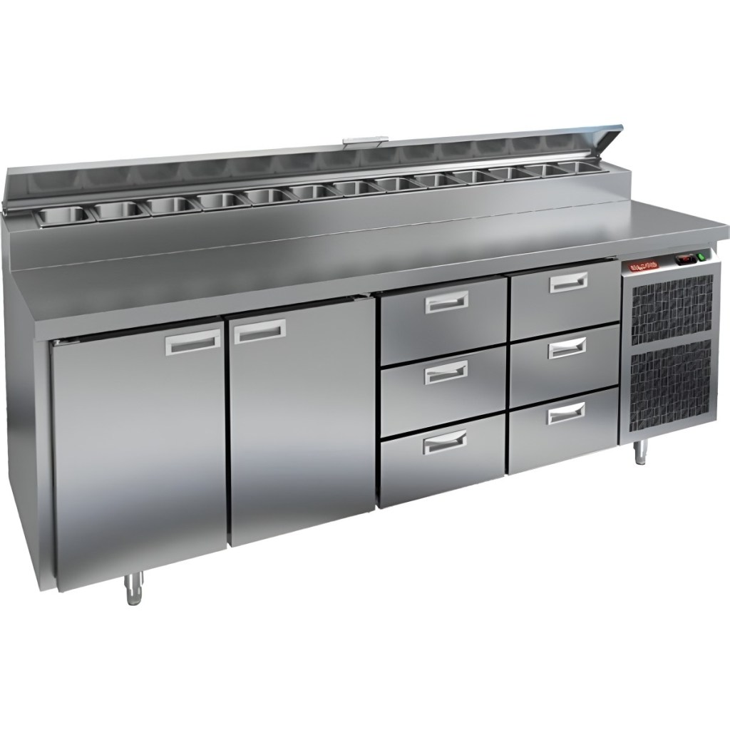 Каталог оборудования Холодильное оборудованиеСтолы охлаждаемыеСтолы холодильные для пиццыСтол холодильный для пиццы HiCold PZ2-1133GN (1/6) Стол холодильный для пиццы HiCold PZ2-1133GN (1/6) Код товара: 064-759 Поделиться: WhatsAppTelegram СравнитьДобавить в КПВ избранное 0 342 442 ₽ В корзину 0 шт Под заказСамовывоз сегодня бесплатно Взять в кредит Купить в лизинг Получить консультацию в WhatsApp Описание Характеристики Отзывы 0 Стол холодильный для пиццы HiCold PZ2-1133GN (1/6) предназначен для кухонь и предприятий общественного питания. Он используется для раскатки теста, подготовки ингредиентов для пиццы, салатов и других блюд, а также для охлаждения и кратковременного хранения скоропортящихся продуктов. Модель совмещает нержавеющую рабочую поверхность и охлаждаемый отсек с 2 дверьми и 6 ящиками, обеспечивая удобный доступ к ингредиентам и эффективное хранение. Особенности: Динамическая система охлаждения для равномерного поддержания температуры Автоматическая оттайка для удобного обслуживания Электронная панель управления для точной настройки параметров Вместительная внутренняя полка формата GN 1/1 (размер 530×325 мм) 2 двери и 6 вместительных ящика для хранения ингредиентов Автоматические доводчики дверей с фиксатором открытого положения Легкозаменяемые магнитные уплотнители для герметичности Открытая агрегатная часть для легкого доступа к компонентам Регулируемые по высоте ножки для устойчивости Нержавеющая столешница глубиной 486 мм и толщиной 50 мм — устойчива к коррозии, легко моется и гигиенична Толщина теплоизоляции: 50 мм Максимальная глубина гастроемкостей: 100 мм Вместимость салат-бара: 13 гастроемкости Стол холодильный HiCold PZ2-1133GN (1/6) — это надежный и функциональный стол для пиццы. Он объединяет рабочую поверхность и охлаждаемый отсек, упрощает хранение и подготовку ингредиентов, обеспечивает удобство работы повара и соответствует стандартам профессиональной кухни. Изображение товара, представленного на фото, может отличаться от его фактического вида. Показать все Габаритные размеры2280×700×1000 ммДиапазон рабочей температурыот +2 до +10 °CРасположение агрегатаБоковое Материал столешницыНержавеющая Тип столаС дверьми и ящиками Тип двериГлухая Объём660 лТип гастроемкостейGN 1/6 Количество дверей2 штКоличество ящиков6 штРазмер полки530×325 ммНапряжение220 ВМощность0,5 кВтТип охлажденияДинамическое Тип оттайкиАвтоматическая Габариты в упаковке2420×850×1080 ммВес нетто208 кгВес брутто240 кгБрендHicoldВсе холодильные столы для пиццы HicoldВсе нержавеющие холодильные столы для пиццы Оставить отзыв Еще никто не оставил отзыв на этот товар Ранее просмотрено Под заказ 250 642 ₽ Стол холодильный для пиццы HiCold PZ1-1111GN (1/3)