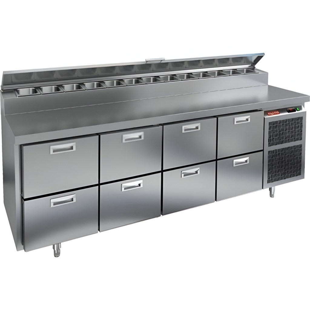 Каталог оборудования Холодильное оборудованиеСтолы охлаждаемыеСтолы холодильные для пиццыСтол холодильный для пиццы HiCold PZ2-2222GN (1/6) Стол холодильный для пиццы HiCold PZ2-2222GN (1/6) Код товара: 064-773 Поделиться: WhatsAppTelegram СравнитьДобавить в КПВ избранное 0 373 042 ₽ В корзину 0 шт Под заказСамовывоз сегодня бесплатно Взять в кредит Купить в лизинг Получить консультацию в WhatsApp Описание Характеристики Отзывы 0 Стол холодильный для пиццы HiCold PZ2-2222GN (1/6) предназначен для кухонь и предприятий общественного питания. Он используется для раскатки теста, подготовки ингредиентов для пиццы, салатов и других блюд, а также для охлаждения и кратковременного хранения скоропортящихся продуктов. Модель совмещает нержавеющую рабочую поверхность и охлаждаемый отсек с 8 выдвижными ящиками, обеспечивая удобный доступ к ингредиентам и эффективное хранение без дверей. Особенности: Динамическая система охлаждения для равномерного поддержания температуры Автоматическая оттайка для удобного обслуживания Электронная панель управления для точной настройки параметров Вместительная внутренняя полка формата GN 1/1 (размер 530×325 мм) 8 выдвижных ящиков для хранения ингредиентов Легкозаменяемые магнитные уплотнители для герметичности Открытая агрегатная часть для легкого доступа к компонентам Регулируемые по высоте ножки для устойчивости Нержавеющая столешница глубиной 486 мм и толщиной 50 мм — устойчива к коррозии, легко моется и гигиенична Толщина теплоизоляции: 50 мм Максимальная глубина гастроемкостей: 100 мм Вместимость салат-бара: 13 гастроемкости Стол холодильный HiCold PZ2-2222GN (1/6) — это надежное и удобное решение для профессиональной кухни. Он обеспечивает легкий доступ к ингредиентам, упрощает хранение и подготовку продуктов и полностью соответствует стандартам предприятий общественного питания.Изображение товара, представленного на фото, может отличаться от его фактического вида. Показать все Габаритные размеры2280×700×1000 ммДиапазон рабочей температурыот +2 до +10 °CРасположение агрегатаБоковое Материал столешницыНержавеющая Тип столаС ящиками Объём660 лТип гастроемкостейGN 1/6 Количество ящиков8 штНапряжение220 ВМощность0,5 кВтТип охлажденияДинамическое Тип оттайкиАвтоматическая Габариты в упаковке2420×850×1080 ммВес нетто208 кгВес брутто240 кгБрендHicoldВсе холодильные столы для пиццы HicoldВсе нержавеющие холодильные столы для пиццы Оставить отзыв Еще никто не оставил отзыв на этот товар Ранее просмотрено Под заказ 278 361 ₽ Стол холодильный для пиццы HiCold PZE1-222GN (1/3) Под заказ 244 971 ₽ Стол холодильный для пиццы HiCold PZ1-112GN (1/3H) Под заказ 242 721 ₽ Стол холодильный для пиццы HiCold PZE2-1111/GN (1/6) М