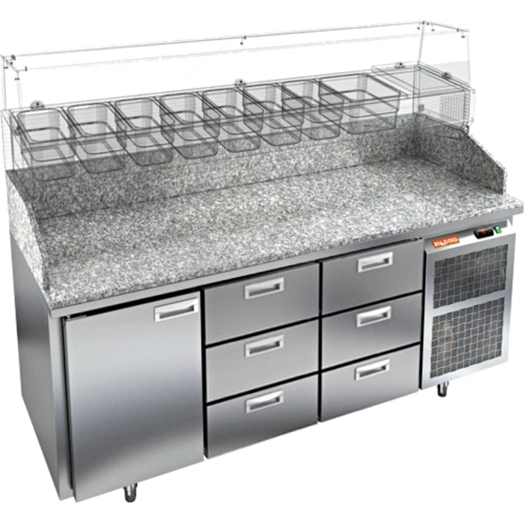 Каталог оборудования Холодильное оборудованиеСтолы охлаждаемыеСтолы холодильные для пиццыСтол холодильный для пиццы HiCold PZ3-133/GN камень Стол холодильный для пиццы HiCold PZ3-133/GN камень Код товара: 065-009 Поделиться: WhatsAppTelegram СравнитьДобавить в КПВ избранное 0 358 552 ₽ В корзину 0 шт Под заказСамовывоз сегодня бесплатно Взять в кредит Купить в лизинг Получить консультацию в WhatsApp Описание Характеристики Отзывы 0 Стол холодильный для пиццы HiCold PZE3-133/GN камень предназначен для использования в пиццериях, кафе, магазинах и ресторанах. Он идеально подходит для раскатки теста, подготовки ингредиентов и кратковременного хранения скоропортящихся продуктов. Витрина приобретается отдельно. Стол сочетает корпус из нержавеющей стали и гранитную столешницу, которая устойчива к механическим и температурным нагрузкам и удобна в работе с тестом. Такая конструкция обеспечивает долговечность, гигиеничность и простоту ухода. Особенности модели: Охлаждение: динамическое — равномерное поддержание температуры Оттайка: автоматическая — удобство и экономия времени Панель управления: электронная — точная настройка температуры Ножки: регулируемые по высоте — устойчивость на неровной поверхности Двери: 1 глухая дверца с автоматическими доводчиками и фиксатором открытого положения Ящики: 6 выдвижных ящика — удобное хранение ингредиентов Уплотнители: легкозаменяемые магнитные — герметичность и простота обслуживания Толщина теплоизоляции: 50 мм — сохранение холода и энергоэффективность Рабочая поверхность: глубина 680 мм — удобство работы HiCold PZE3-133/GN камень— это надёжный и функциональный холодильный стол для пиццы, который сочетает прочность, эргономику и эффективное охлаждение. Благодаря гранитной столешнице, корпусу из нержавеющей стали, двум глухим дверям и двум выдвижным ящикам он станет универсальным решением для профессиональной кухни. Изображение товара, представленного на фото, может отличаться от его фактического вида. Показать все Габаритные размеры1835×700×1050 ммДиапазон рабочей температурыот +2 до +10 °CРасположение агрегатаБоковое Материал столешницыГранитная Тип столаС дверьми и ящиками Тип двериГлухая Объём505 лКоличество дверей2 штКоличество ящиков2 штРазмер полки530×325 ммНапряжение220 ВМощность0,5 кВтТип охлажденияДинамическое Тип оттайкиАвтоматическая Габариты в упаковке2000×850×1180 ммВес нетто172 кгВес брутто192 кгБрендHicoldВсе холодильные столы для пиццы HicoldВсе нержавеющие холодильные столы для пиццы Оставить отзыв Еще никто не оставил отзыв на этот товар Ранее просмотрено Под заказ 222 472 ₽ Стол холодильный для пиццы HiCold PZ3-11/SN 3 камень