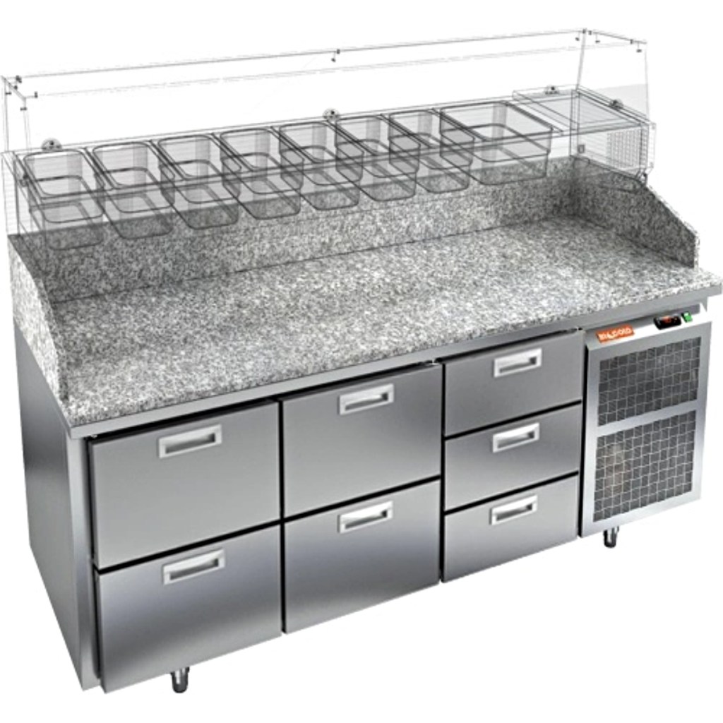 Каталог оборудования Холодильное оборудованиеСтолы охлаждаемыеСтолы холодильные для пиццыСтол холодильный для пиццы HiCold PZ3-223/GN камень Стол холодильный для пиццы HiCold PZ3-223/GN камень Код товара: 065-012 Поделиться: WhatsAppTelegram СравнитьДобавить в КПВ избранное 0 373 852 ₽ В корзину 0 шт Под заказСамовывоз сегодня бесплатно Взять в кредит Купить в лизинг Получить консультацию в WhatsApp Описание Характеристики Отзывы 0 Стол холодильный для пиццы HiCold PZE3-223/GN камень предназначен для использования в пиццериях, кафе, магазинах и ресторанах. Он идеально подходит для раскатки теста, подготовки ингредиентов и кратковременного хранения скоропортящихся продуктов. Витрина приобретается отдельно. Стол сочетает корпус из нержавеющей стали и гранитную столешницу, которая устойчива к механическим и температурным нагрузкам и удобна в работе с тестом. Такая конструкция обеспечивает долговечность, гигиеничность и простоту ухода. Особенности модели: Охлаждение: динамическое — равномерное поддержание температуры Оттайка: автоматическая — удобство и экономия времени Панель управления: электронная — точная настройка температуры Ножки: регулируемые по высоте — устойчивость на неровной поверхности Ящики: 7 выдвижных ящика — удобное хранение ингредиентов Уплотнители: легкозаменяемые магнитные — герметичность и простота обслуживания Толщина теплоизоляции: 50 мм — сохранение холода и энергоэффективность Рабочая поверхность: глубина 680 мм — удобство работы HiCold PZE3-223/GN камень— это надёжный и функциональный холодильный стол для пиццы, который сочетает прочность, эргономику и эффективное охлаждение. Благодаря гранитной столешнице, корпусу из нержавеющей стали, двум глухим дверям и двум выдвижным ящикам он станет универсальным решением для профессиональной кухни. Изображение товара, представленного на фото, может отличаться от его фактического вида. Показать все Габаритные размеры1835×700×1050 ммДиапазон рабочей температурыот +2 до +10 °CРасположение агрегатаБоковое Материал столешницыГранитная Тип столаС ящиками Объём505 лКоличество ящиков7 штРазмер полки530×325 ммНапряжение220 ВМощность0,5 кВтТип охлажденияДинамическое Тип оттайкиАвтоматическая Габариты в упаковке2000×850×1180 ммВес нетто172 кгВес брутто192 кгБрендHicoldВсе холодильные столы для пиццы HicoldВсе нержавеющие холодильные столы для пиццы Оставить отзыв Еще никто не оставил отзыв на этот товар Ранее просмотрено Под заказ 222 472 ₽ Стол холодильный для пиццы HiCold PZ3-11/SN 3 камень