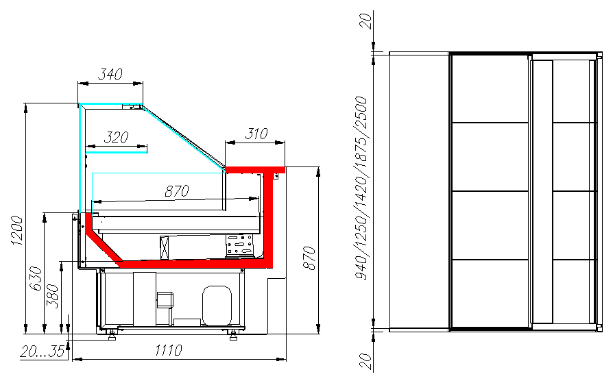 Боковины не поставляются в комплекте и продаются отдельно. Отдельностоящие модели приобретаются только вместе с боковинами. При установке нескольких витрин с одинаковым температурным режимом достаточно заказать 2 боковины на всю линию.