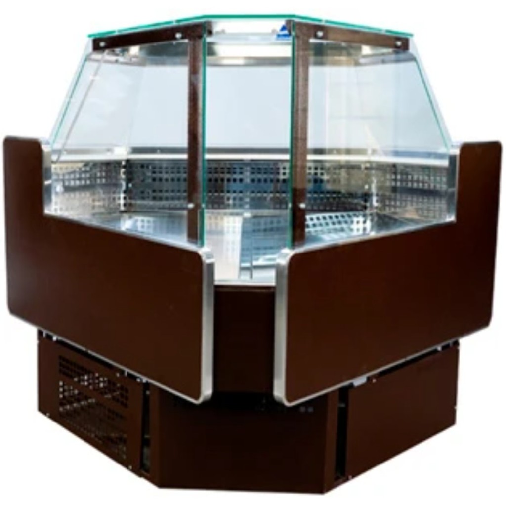 Модель оснащена внутренним углом для организации компактной и удобной выкладки в угловых секциях торгового зала. Динамическая система охлаждения обеспечивает равномерное распределение холодного воздуха и поддержание стабильной температуры даже в угловых участках витрины.