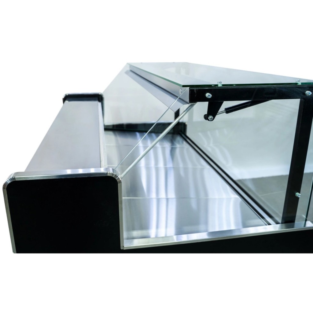 Каталог оборудования Холодильное оборудованиеВитрины холодильныеВитрины холодильные среднетемпературные от 0 до +5 °СВитрина холодильная Ангара 3 КУБ 2,0 динамика Витрина холодильная Ангара 3 КУБ 2,0 динамика Код товара: 066-481 Поделиться: WhatsAppTelegram СравнитьДобавить в КПВ избранное 0 122 602 ₽ В корзину 0 шт Под заказСамовывоз сегодня бесплатно Взять в кредит Купить в лизинг Получить консультацию в WhatsApp Описание Характеристики Отзывы 0 Витрина холодильная Ангара 3 КУБ 2,0 динамика предназначена для демонстрации и кратковременного хранения пищевых продуктов. Витрина поддерживает заданную температуру предварительно охлаждённых продуктов и гармонично вписывается в оформление торгового зала или открытой площадки. Особенности: Динамическое охлаждение с равномерным распределением воздушных потоков по всей камере Встроенный компрессорный холодильный агрегат Embraco Aspera или Secop (Danfoss) Надёжный микродвигатель EBM-PAPST Ударопрочное прямое лобовое стекло и боковые стекла толщиной 6 мм Материалы: поверхность выкладки – нержавеющая сталь, подтоварники – оцинкованная сталь с полимерным покрытием, столешницы – нержавеющая сталь Вместительный подтоварник для хранения продукции Автоматическое оттаивание испарителя с отводом талой воды в ёмкость в агрегатном отсеке Электронное управление температурой через блок Elitech ETC-974 (2 датчика, усиленное реле) Равномерное распределение температуры по объёму камеры без образования льда и инея Светодиодное LED-освещение – яркое, экономичное, с низким тепловыделением; включается кнопкой на панели управления Автомат IEK для надёжного включения/выключения витрины Ровное расположение витрины благодаря регулируемым опорам, правильный сбор конденсата и бесшумная работа Хладагент – экологичный и нетоксичный R-134a, R-404a Испаритель SEST LUVE от итальянского производителя Комплектация: с подтоварником и электронным блоком управления Температура окружающей среды: +12…+35 °C Ангара 3 КУБ 2,0 – надёжная и компактная витрина для демонстрации и хранения предварительно охлаждённых продуктов. Обеспечивает равномерное охлаждение, яркое LED-освещение и автоматическое оттаивание, что делает её отличным решением для магазинов, гастрономий и открытых торговых площадок.Изображение товара, представленного на фото, может отличаться от его фактического вида. Показать все Габаритные размеры2020×1150×1300 ммДиапазон рабочей температурыот 0 до +5 °CПлощадь выкладки1,6 м²Длина2020 ммГлубина1150 ммВысота1300 ммНоминальная мощность345 ВтРазмер выкладки820 ммПолезный объем370 лХолодообеспечениеВстроенное Тип охлажденияДинамическое Тип оттайкиАвтоматическая Температура эксплуатацииот +12 до +35 °CПодсветкаЕсть ХладагентR134a, R404a Напряжение220 ВРасход электроэнергии в сутки8,3 кВт/сутГабариты в упаковке2300×1500×1200 ммОбъём (брутто)4,14 м³Вес нетто250 кгВес брутто350 кгБрендАнгараВсе витрины холодильные среднетемпературные от 0 до +5 °С 2,0 м Оставить отзыв Еще никто не оставил отзыв на этот товар Ранее просмотрено Под заказ 182 926 ₽ Камера холодильная Polair КХН-11,18 (1960×2860×2460) 80 мм Под заказ 93 928 ₽ Витрина холодильная Ангара 2 КУБ 1,0 динамика Под заказ 186 593 ₽ Шкаф морозильный Kayman К1500-М