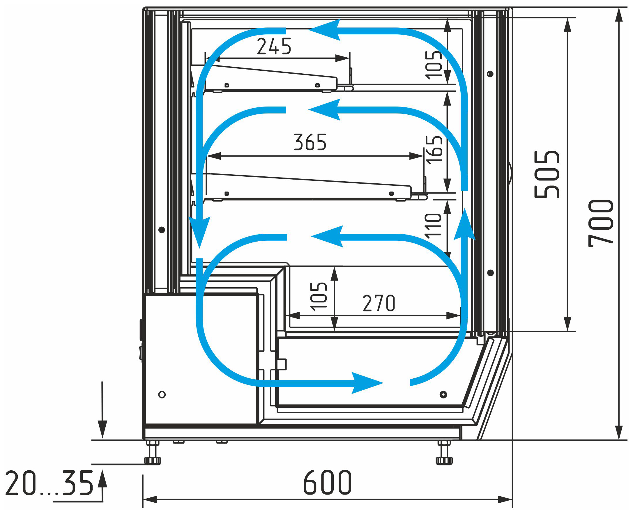Каталог оборудования Холодильное оборудованиеВитрины настольныеВитрина холодильная настольная Carboma AC59 VM 0,7-1 (слайдер) (0430) Витрина холодильная настольная Carboma AC59 VM 0,7-1 (слайдер) (0430) Код товара: 063-685 Поделиться: WhatsAppTelegram СравнитьДобавить в КПВ избранное 0 106 741 ₽ В корзину 0 шт Под заказСамовывоз сегодня бесплатно Взять в кредит Купить в лизинг Получить консультацию в WhatsApp Описание Характеристики Отзывы 0 Инструкции 2 Витрина холодильная настольная Carboma AC59 VM 0,7-1 (слайдер) (0430) — это универсальная охлаждаемая витрина для демонстрации и кратковременного хранения кондитерских изделий, десертов, салатов и напитков. Идеально подходит для небольших кафе, баров и заведений общественного питания. Модель оснащена закалёнными боковыми стеклопакетами, раздвижными фронтальными и задними дверцами, а также двумя охлаждаемыми полками-решётками с ограничителями. Может устанавливаться на столешницу или встраиваться в барную стойку. Корпус выполнен из стали с ППУ-теплоизоляцией, а рабочая поверхность — из нержавеющей стали. Ключевые особенности: Динамическая система охлаждения — равномерное распределение температуры Компрессор европейского производства — высокая надёжность Электронный блок управления Carel — точный контроль температурного режима Выпариватель конденсата — исключает необходимость ручного слива Возможность установки полок под углом 5° — улучшенная презентация Фронтальные и задние раздвижные дверцы — удобный доступ с обеих сторон Боковая LED-подсветка — подчёркивает структуру десертов и изделий Современный кубический дизайн — стильный внешний вид Регулируемые ножки-опоры — устойчивость на любых поверхностях Настольное или встраиваемое размещение — гибкость установки Стабильный температурный режим — для безопасного хранения продуктов Глубина нижней зоны выкладки: 270 мм Глубина полок: 365 мм (верхняя) / 245 мм (нижняя) Длина нижнего поддона: 666 мм Максимальная высота выкладки продуктов: нижний поддон — 150 мм, полки — 100 мм Температура окружающей среды: от 12 до 25 °C Относительная влажность воздуха: до 60% Carboma AC59 VM 0,7-1 (слайдер) (0430) — это надёжная и эргономичная охлаждаемая витрина с удобным доступом с обеих сторон, которая обеспечит качественную демонстрацию и сохранность продукции в кафе, барах и точках продаж.Изображение товара, представленного на фото, может отличаться от его фактического вида. Показать все Габаритные размеры700×600×735 ммДиапазон рабочей температурыот +4 до +10 °CДлина700 ммГлубина600 ммВысота735 ммРазмещениеГоризонтальная Площадь выкладки0,56 м²Полезный объем витрины0,06 м³Тип охлажденияДинамическое Климатический класс3 ХладагентR290, R600a Напряжение220 ВЭнергопотребление в сутки4 кВтКоличество полок2 штГабариты в упаковке850×750×890 ммВес нетто78 кгВес брутто86 кгБрендПолюсВсе витрины настольные CarbomaВсе холодильные настольные витриныВсе стеклянные настольные витрины Оставить отзыв Еще никто не оставил отзыв на этот товар Брошюра на Carboma AMRA AC59 VM.pdfСхема Carboma AMRA AC59 VM 0,7-1 Slider.jpg Похожие товары Перейти в каталог Под заказ 152 858 ₽ Витрина кондитерская Chilz VETE 90 М шоколад, золотой глянец Под заказ 154 200 ₽ Витрина кондитерская Carboma K70 VM 1,3-1 Light Паттерн (0110 Мариэль) Под заказ 135 100 ₽ Витрина кондитерская Carboma K70 VH 0,9-1 Light Chocolate Паттерн (0105 Венге) для шоколада Под заказ 120 200 ₽ Витрина кондитерская Carboma KR70 N 0,9-1 Light Bread (9005-0109) хлебная Под 